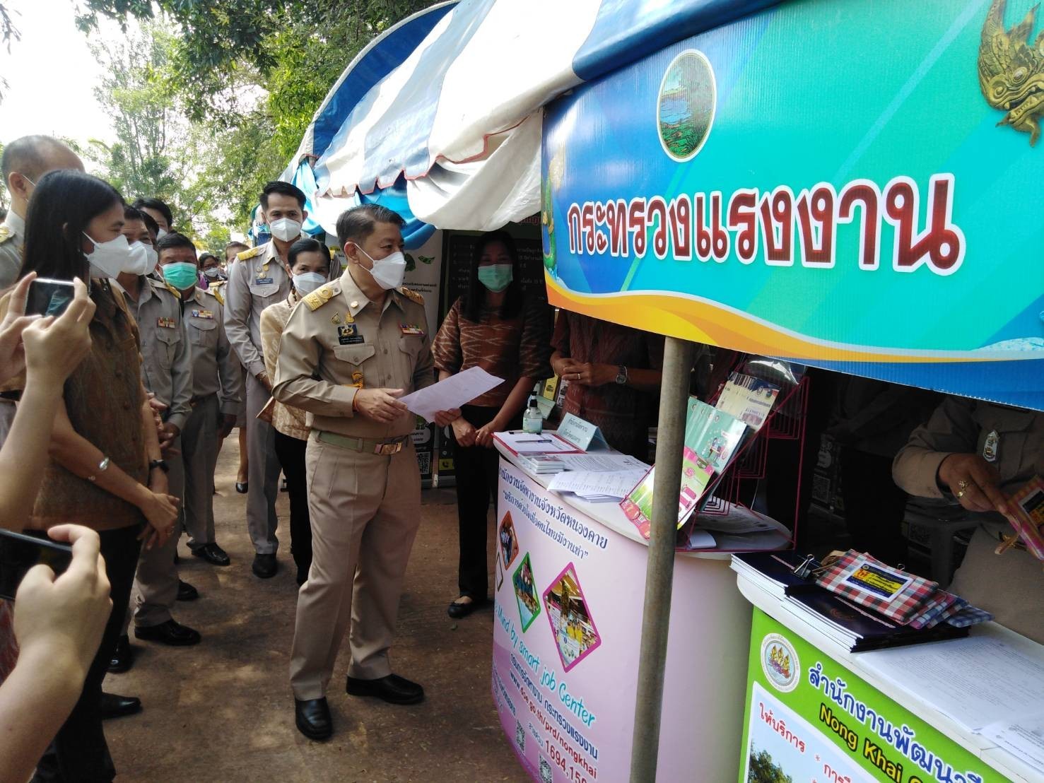 วันที่ 20 เมษายน 2565 เวลา 09.30 น. นางสมหมาย เทียมกัน แรงงานจังหวัดหนองคาย มอบหมายให้เจ้าหน้าที่สำนักงานแรงงาน เข้าร่วมโครงการการบริการจังหวัดเคลื่อนที่แบบบูรณาการและหน่วยบำบัดทุกข์ บำรุงสุข จังหวัดหนองคาย ประจำปี พ.ศ. 2565 ณโรงเรียนรสลินคัคณางค์ ตำบลเฝ้าไร่ อำเภอเฝ้าไร่ จังหวัดหนองคาย โดยมีนายมนต์สิทธิ์ ไพศาลธนวัฒน์ ผู้ว่าราชการจังหวัดหนองคายเป็นประธานในพิธีเปิดโครงการ ในการนี้ หน่วยงานสังกัดกระทรวงแรงงานจังหวัดหนองคาย ได้ร่วมจัดกิจกรรมออกหน่วยให้บริการเคลื่อนที่ ในภารกิจของกระทรวงแรงงานจังหวัดหนองคาย พร้อมทั้ง แจกแผ่นพับประชาสัมพันธ์และเล่นเกมส์ตอบปัญหาชิงรางวัลมากมายภายในการออกหน่วยบริการดังกล่าว
