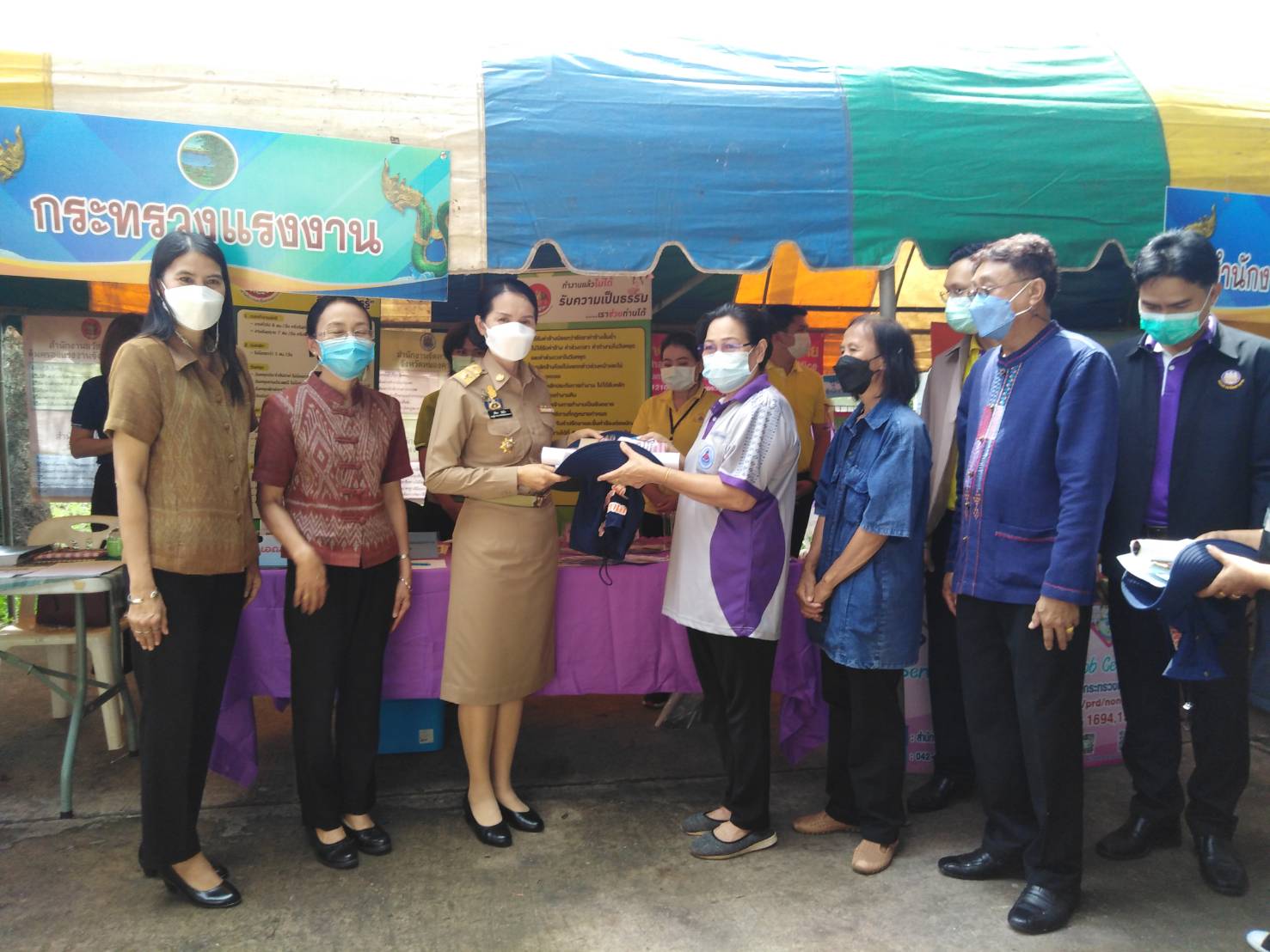 วันที่ 25 พฤษภาคม 2565 เวลา 09.30 น. นางสมหมาย เทียมกัน แรงงานจังหวัดหนองคาย มอบหมายให้เจ้าหน้าที่สำนักงานแรงงาน เข้าร่วมโครงการการบริการจังหวัดเคลื่อนที่แบบบูรณาการ และหน่วยบำบัดทุกข์ บำรุงสุข จังหวัดหนองคาย ประจำปี พ.ศ. 2565 ณ โรงเรียนบ้านโพธิ์ตาก ตำบลโพธิ์ตาก อำเภอโพธิ์ตาก จังหวัดหนองคาย โดยมี นางสาวสิริมา วัฒโน รองผู้ว่าราชการ จังหวัดหนองคายเป็นประธานในพิธีเปิดโครงการ ในการนี้ หน่วยงานสังกัดกระทรวงแรงงาน จังหวัดหนองคาย ได้ร่วมจัดกิจกรรมออกหน่วยให้บริการเคลื่อนที่ ในภารกิจของกระทรวงแรงงาน จังหวัดหนองคาย พร้อมทั้ง แจกแผ่นพับประชาสัมพันธ์และเล่นเกมส์ตอบปัญหาชิงรางวัลมากมาย ภายในการออกหน่วยบริการดังกล่าว