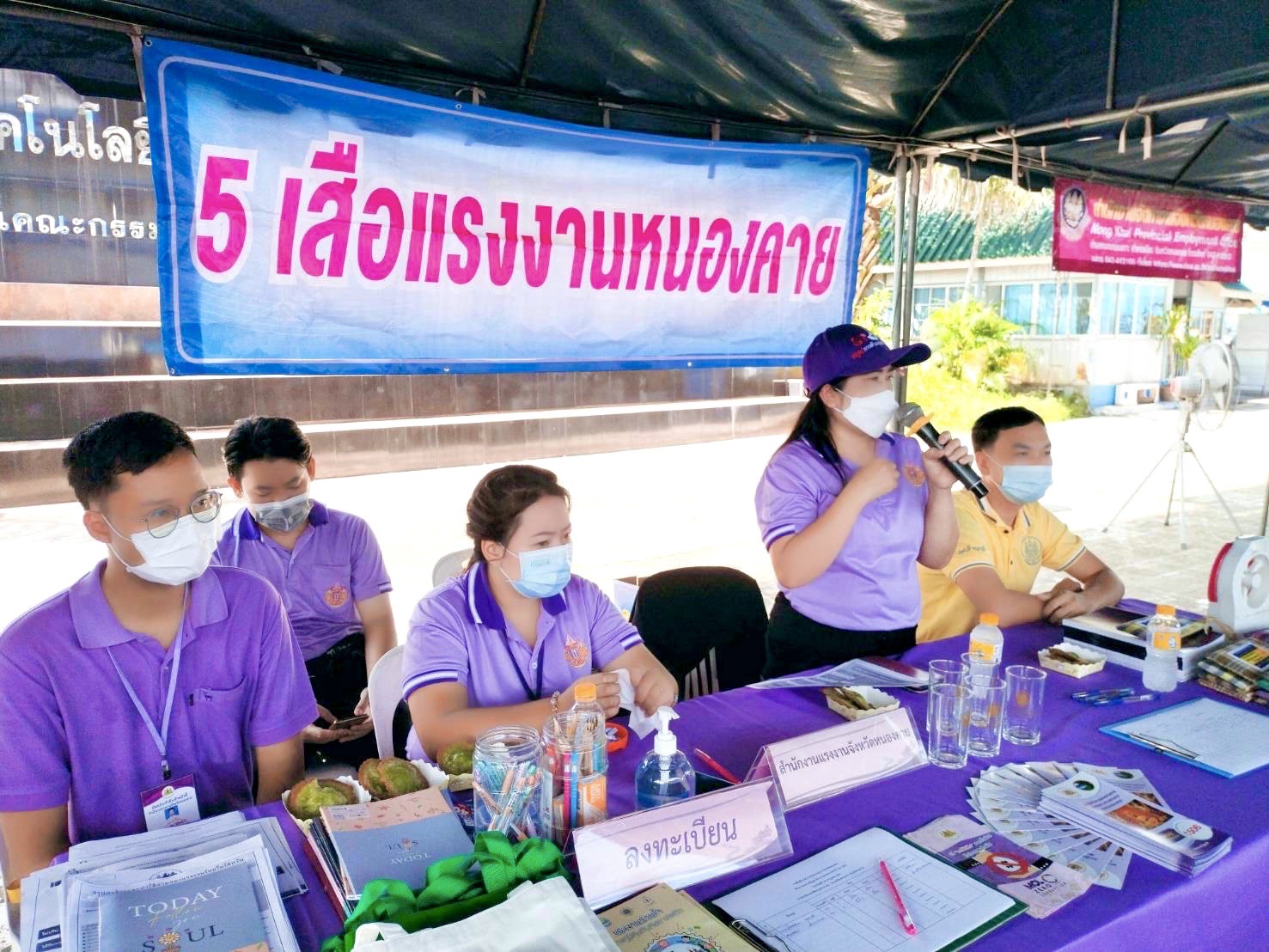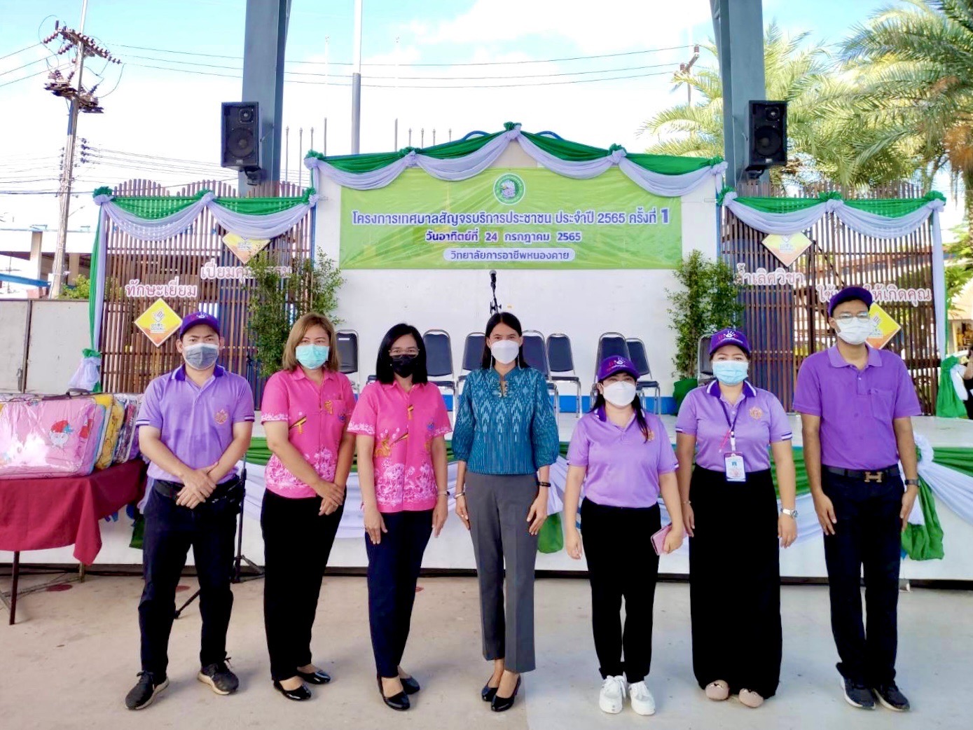 วันที่ 24 กรกฎาคม 2565 เวลา 09.00 น. นางสมหมาย เทียมกัน แรงงานจังหวัดหนองคาย มอบหมายให้นางสาวลีลาวดี ศรีภูธร นักวิชาการแรงงานชำนาญการ และเจ้าหน้าที่ สำนักงานแรงงานจังหวัดหนองคายเข้าร่วมโครงการเทศบาลสัญจรบริการประชาชน ประจำปี 2565 ครั้งที่ 1 ณ วิทยาลัยการอาชีพหนองคาย อำเภอเมือง จังหวัดหนองคาย โดยมีนายอุรุยศ เอียสกุล นายกเทศมนตรีเมืองหนองคาย เป็นประธานในพิธีเปิดโครงการ
