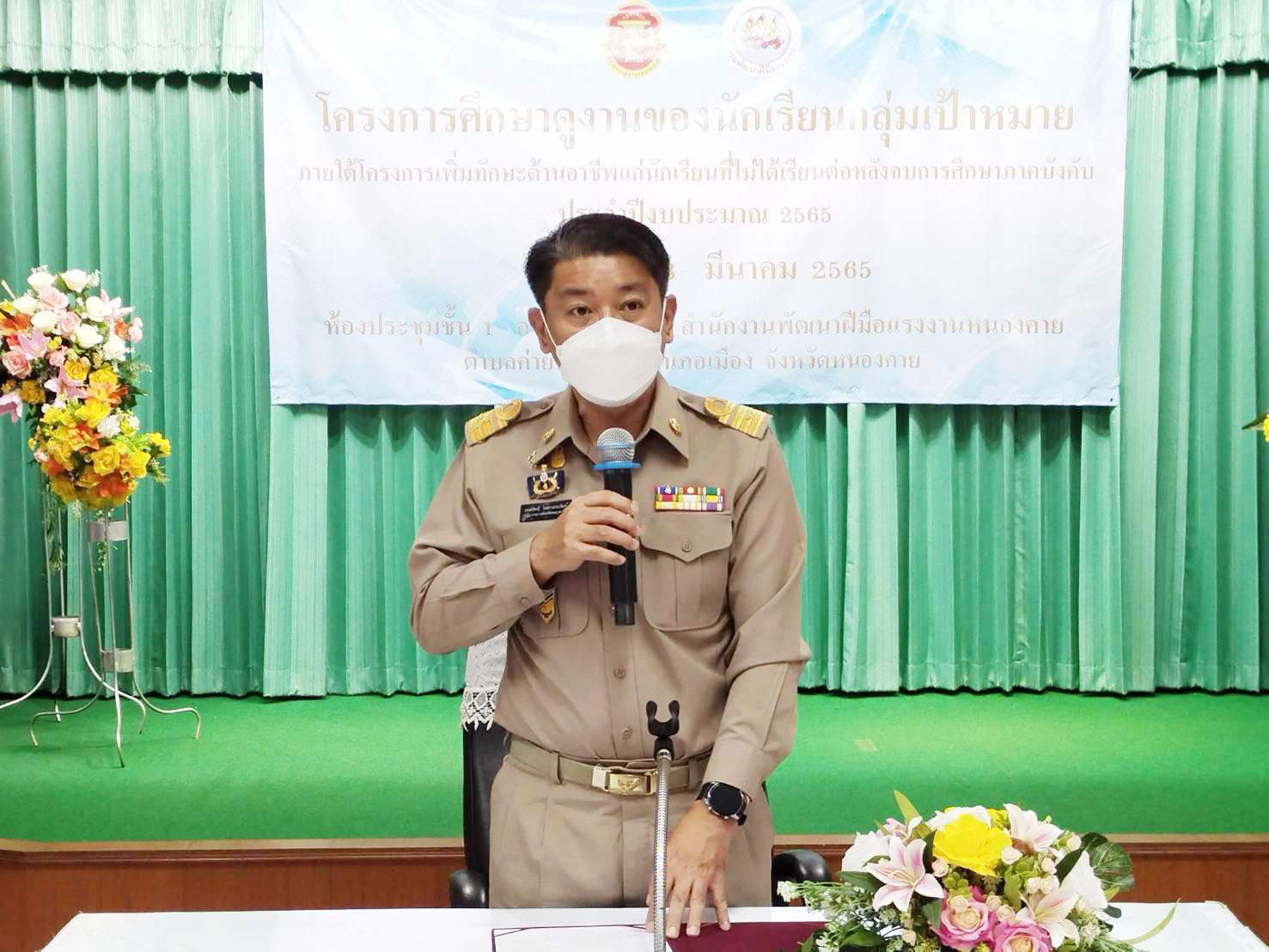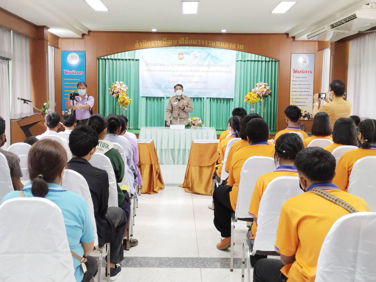 วันที่ 23 มีนาคม 2565 เวลา 08.30 น. นางสมหมาย เทียมกัน แรงงานจังหวัดหนองคาย มอบหมายให้ นางสาว ลีลาวดี ศรีภูธรนักวิชาการแรงงานชำนาญการและผู้แทนหน่วยงานในสังกัดกระทรวงแรงงานจังหวัดหนองคาย ร่วมเป็นเกียรติและเป็นวิทยากรโครงการศึกษาดูงานของนักเรียนกลุ่มเป้าหมายภายใต้โครงการเพิ่มทักษะด้านอาชีพแก่นักเรียนที่ไม่ได้เรียนต่อหลังจบการศึกษาภาคบังคับปีงบประมาณ พ.ศ.2565 ณ สำนักงานพัฒนาฝีมือแรงงานจังหวัดหนองคาย โดยมีนายมนสิทธิ์ ไพศาลธนวัฒน์ ผู้ว่าราชการจังหวัดหนองคาย เป็นประธานในพิธีเปิดโครงการ