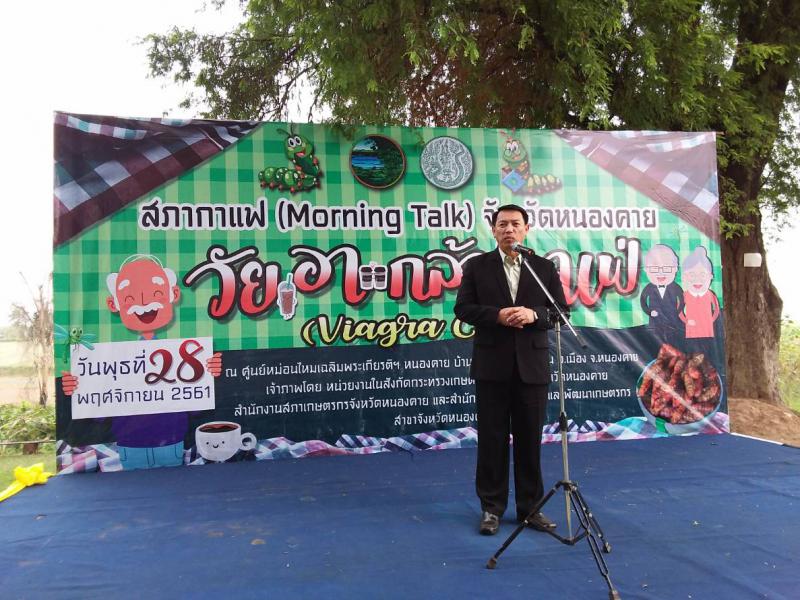 วันที่ 28 พฤศจิกายน 2561 นางวรรณกานต์ ขาวลาภ แรงงานจังหวัดหนองคาย ร่วมงานสภากาแฟ (Morning Talk) ประจำเดือนพฤศจิกายน 2561 ณ ศูนย์หม่อนไหมเฉลิมพระเกียรติฯ หนองคาย (ส่วนแยก) บ้านหนองบัว ตำบลกวนวัน อำเภอเมืองหนองคาย จังหวัดหนองคาย