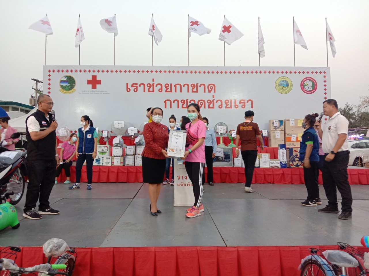 วันที่ 10 มีนาคม 2564 เวลา 18.30 น. นางสมหมาย เทียมกัน แรงงานจังหวัดหนองคาย และเจ้าหน้าที่ ร่วมปฏิบัติหน้าที่เปิดหลอดรางวัลและแจกรางวัลบ่อมัจฉากาชาด ในงานฉลองอนุสาวรีย์ปราบฮ่อ ใต้ร่มพระบารมี 194 ปี เมืองหนองคายและงานกาชาด ประจำปี 2564 ณ บริเวณหน้าอนุสาวรีย์ปราบฮ่อ อำเภอเมือง จังหวัดหนองคาย โดยมีนายประเสริฐ ลือชาธนานนท์ ผู้ว่าราชการจังหวัดหนองคาย ร่วมมอบของรางวัล