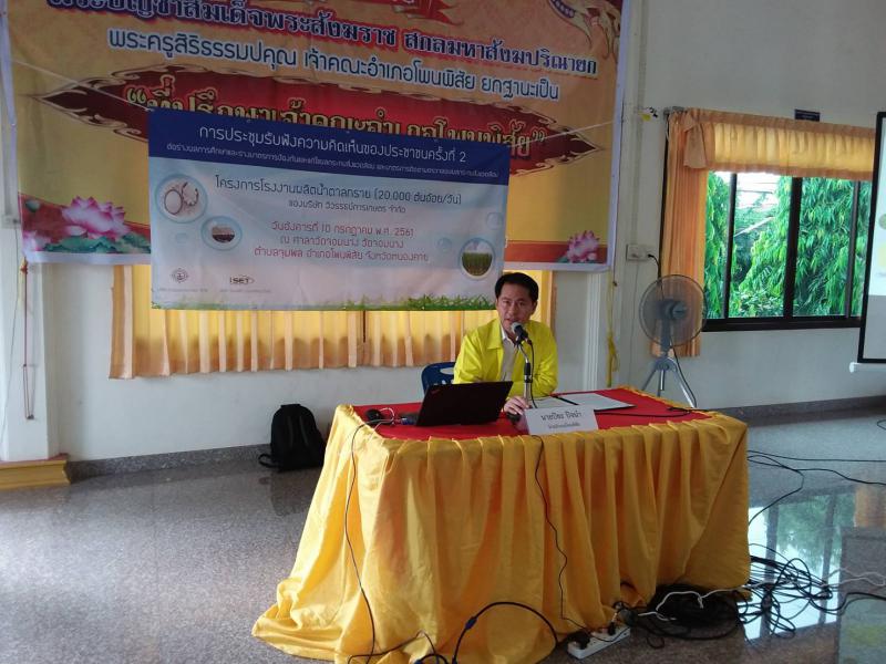 วันที่ 10 กรกฎาคม 2561 เวลา 08.30 น. นางวรรณกานต์ ขาวลาภ แรงงานจังหวัดหนองคาย ร่วมประชุมรับฟังความคิดเห็นของประชาชน ครั้งที่ 2 ต่อร่างผลการศึกษาและร่างมาตรการป้องกันและแก้ไขผลกระทบสิ่งแวดล้อมและมาตรการติดตามตรวจสอบผลกระทบสิ่งแวดล้อม โครงการโรงงานผลิตน้ำตาลทราย (20,000 ตันอ้อย/วัน) ของบริษัท วิวรรธน์การเกษตร จำกัด ณ ศาลาวัดจอมนาง วัดจอมนาง ตำบลจุมพล อำเภอโพนพิสัย จังหวัดหนองคาย ซึ่งหากมีการก่อสร้างโรงงานดังกล่าว คาดว่าจะเกิดการจ้างงาน ลูกจ้างประจำ ประมาณ 400 คน และลูกจ้างชั่วคราวรายวันในฤดูกาลเปิดหีบอ้อยประมาณ 300 คน รวมเป็น 700 คน