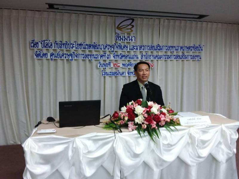 วันที่ 28 พฤศจิกายน 2561 นางวรรณกานต์ ขาวลาภ แรงงานจังหวัดหนองคาย ร่วมสัมมนา เรื่อง บีโอไอกับสิทธิประโยชน์เขตพัฒนาเศรษฐกิจพิเศษและมาตรการส่งเสริมการลงทุนภาคเกษตรท้องถิ่น ณ โรงแรมอมันตา จังหวัดหนองคาย