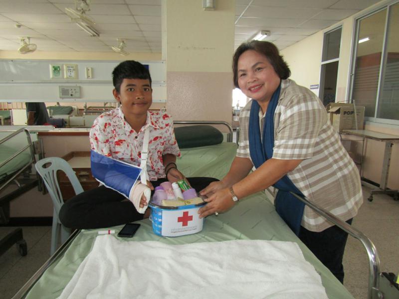 วันที่ 26 ธันวาคม 2561 เวลา 10.00 น. นางวรรณกานต์ ขาวลาภ แรงงานจังหวัดหนองคาย ร่วมโครงการ “ห่วงใย เยี่ยมไข้ ให้ของ เพื่อถวายเป็นพระราชกุศล สมเด็จพระนางเจ้าสิริกิติ์ พระบรมราชินีนาถ ในรัชกาลที่ 9 สภานายิกาสภากาชาดไทย ประจำปี 2562 เพื่อสร้างขวัญและกำลังใจ เยียวยา จิตใจให้กับผู้ป่วยที่ไม่ได้กลับบ้านในช่วงเทศกาลปีใหม่ ในโรงพยาบาลจังหวัดหนองคาย