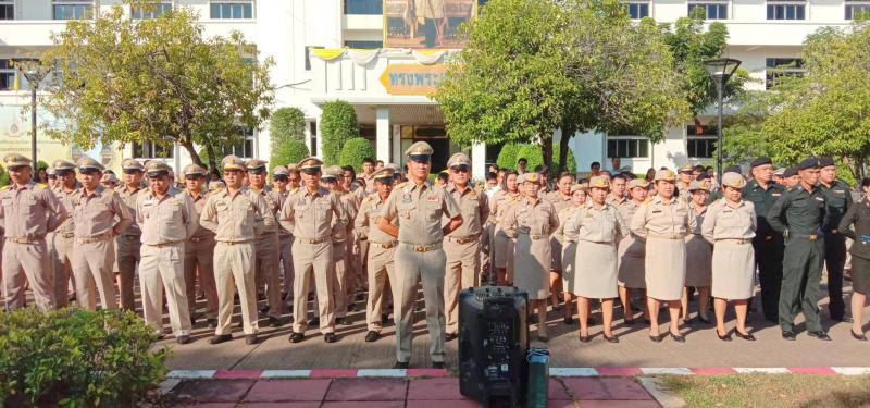 วันนี้ 7 ตุลาคม 2562 เวลา 08.00 น. นายรณชัย จิตรวิเศษ ผู้ว่าราชการจังหวัดหนองคาย พร้อมด้วยหัวหน้าส่วนราชการ ข้าราชการ เจ้าหน้าที่ และพนักงานของส่วนราชการและหน่วยงานที่มีสำนักงานอยู่ในศูนย์ราชการจังหวัดหนองคาย ได้ร่วมกันร้องเพลงชาติไทย และสวดมนต์ไหว้พระก่อน จะเข้าปฏิบัติงานในหน่วยงานของตนเอง ซึ่งมีหัวหน้าส่วนราชการ ข้าราชการ เจ้าหน้าที่ พนักงานของส่วนราชการและหน่วยงานที่มีสำนักงานอยู่ในศูนย์ราชการจังหวัดหนองคาย และในการนี้ได้มีทีมบุคลากรจากสำนักงานแรงงานจังหวัดหนองคายและหน่วยงานในสังกัดกระทรวงแรงงาน ได้เข้าร่วมกิจกรรมเคารพธงชาติไทยครั้งนี้อย่างพร้อมเพรียงกัน
