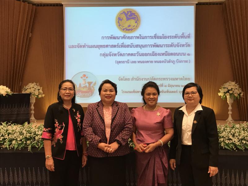 วันที่ 8 มิถุนายน 2561 เวลา 09.00 น. นางวรรณกานต์ ขาวลาภ แรงงานจังหวัดหนองคาย นางศิริลักษณ์ อาจอาษา สถิติจังหวัดหนองคาย นางสาววรางคนา ศิลปะกิจ ปภ.จังหวัดหนองคาย เข้าร่วมโครงการพัฒนาศักยภาพในการเชื่อมโยงระดับพื้นที่และจัดทำแผนยุทธศาสตร์เพื่อสนับสนุนการพัฒนาระดับจังหวัด กลุ่มจังหวัดภาคตะวันออกเฉียงเหนือ ตอนบน 1 ณ โรงแรมเซ็นทาราและคอนเวนชันเซ็นเตอร์ อำเภอเมืองอุดรธานี จังหวัดอุดรธานี