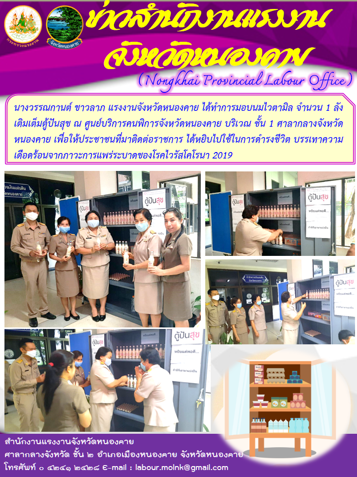 แรงงานจังหวัดหนองคาย เติมเต็มตู้ปันสุข ณ ศูนย์บริการคนพิการจังหวัดหนองคาย บริเวณ ชั้น 1 ศาลากลางจังหวัดหนองคาย