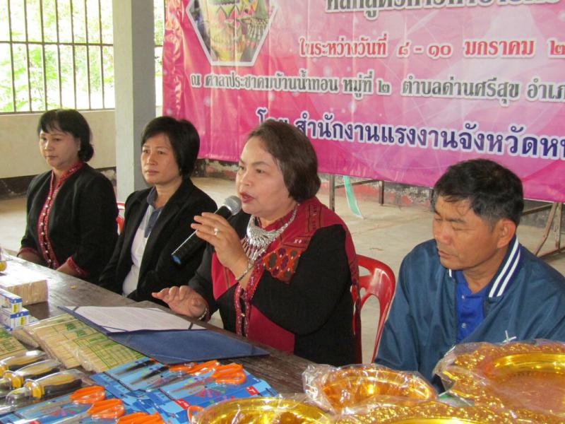 เช้าวันที่ 8 มกราคม 2562 เวลา 09.00 น.นางวรรณกานต์ ขาวลาภ แรงงานจังหวัดหนองคาย เดินทางไปเป็นประธานเปิดโครงการแก้ไขปัญหาความเดือดร้อนด้านอาชีพจังหวัดหนองคาย ปีงบประมาณ 2562 ในกิจกรรมพัฒนาทักษะฝีมือ หลักสูตรการทำขนมไทย ณ บ้านดงป่าเปลือย หมู่ที่ 6 ตำบลนางิ้ว อำเภอสังคมและหลักสูตรการทำบายศรี ณ บ้านน้ำทอน หมู่ที่ 2 ตำบลนางิ้ว อำเภอโพธิ์ตาก ซึ่งเป็นการส่งเสริมให้แรงงานในพื้นที่มีรายได้ในการดำรงชีพของตนเองและครอบครัวเป็นการชั่วคราว และสามารถฝึกทักษะและพัฒนาศักยภาพในสาขาอาชีพ สร้างโอกาสและทางเลือกในการประกอบอาชีพให้เกิดรายได้ และเตรียมความพร้อมรองรับการขับเคลื่อนแผนกลุ่มจังหวัดอีสานตอนบน 1 การท่องเที่ยววัฒนธรรมลุ่มน้ำโขง ตามนโยบายรัฐบาลให้เกิดความมั่นคง มั่งคั่ง ยั่งยืน นางวรรณกานต์ กล่าวในตอนท้าย