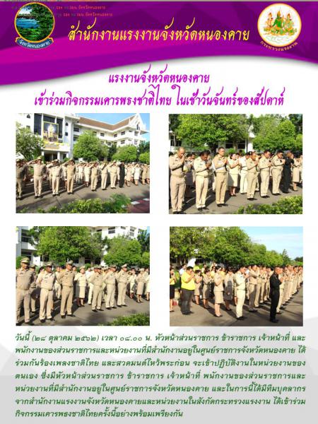 แรงงานจังหวัดหนองคาย เข้าร่วมกิจกรรมเคารพธงชาติไทย ในเช้าวันจันทร์ของสัปดาห์