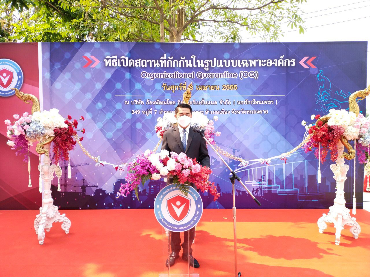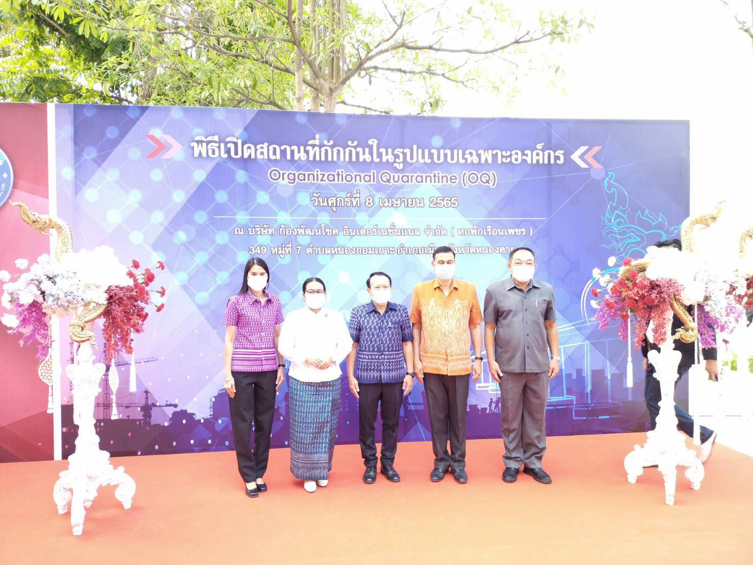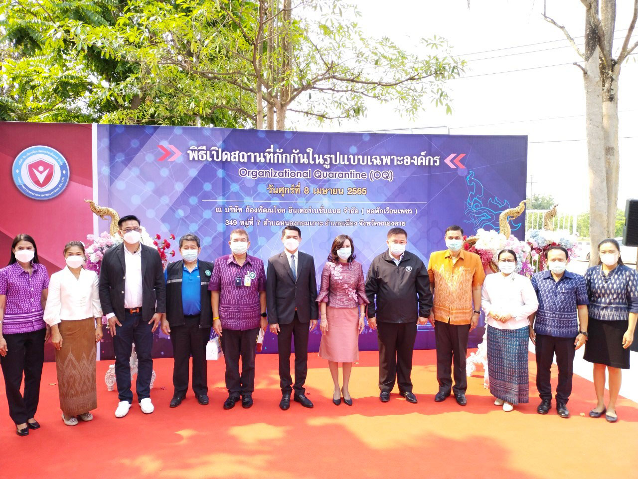 วันที่ 8 เมษายน 2565 เวลา 09.00 น. นางสมหมาย เทียมกัน แรงงานจังหวัดหนองคาย และหัวหน้าส่วนราชการในสังกัดกระทรวงแรงงานจังหวัดหนองคาย เข้าร่วมพิธีเปิดสถานกักกันในรูปแบบเฉพาะองค์ Organizational Quarantine (OQ)เพื่อกักกันแรงงานต่างด้าวที่เดินทางมาจากสาธารณรัฐประขาธิปไตยประชาชนลาวและเข้ามาทำงานในประเทศไทย ตามระบบ MOU ณ บริษัท ก้องพัฒนโชค อินเตอร์เนชั่นเนล จำกัด (หอพักเรือนเพชร) 349 หมู่ที่ 7 ตำบลหนองกอมเกาะ อำเภอเมือง จังหวัดหนองคาย โดยมีนายอาธิศักดิ์ กังสวร คณะที่ปรึกษารัฐมนตรีว่าการกระทรวงแรงงาน เป็นประธานในพิธีเปิดในการนี้