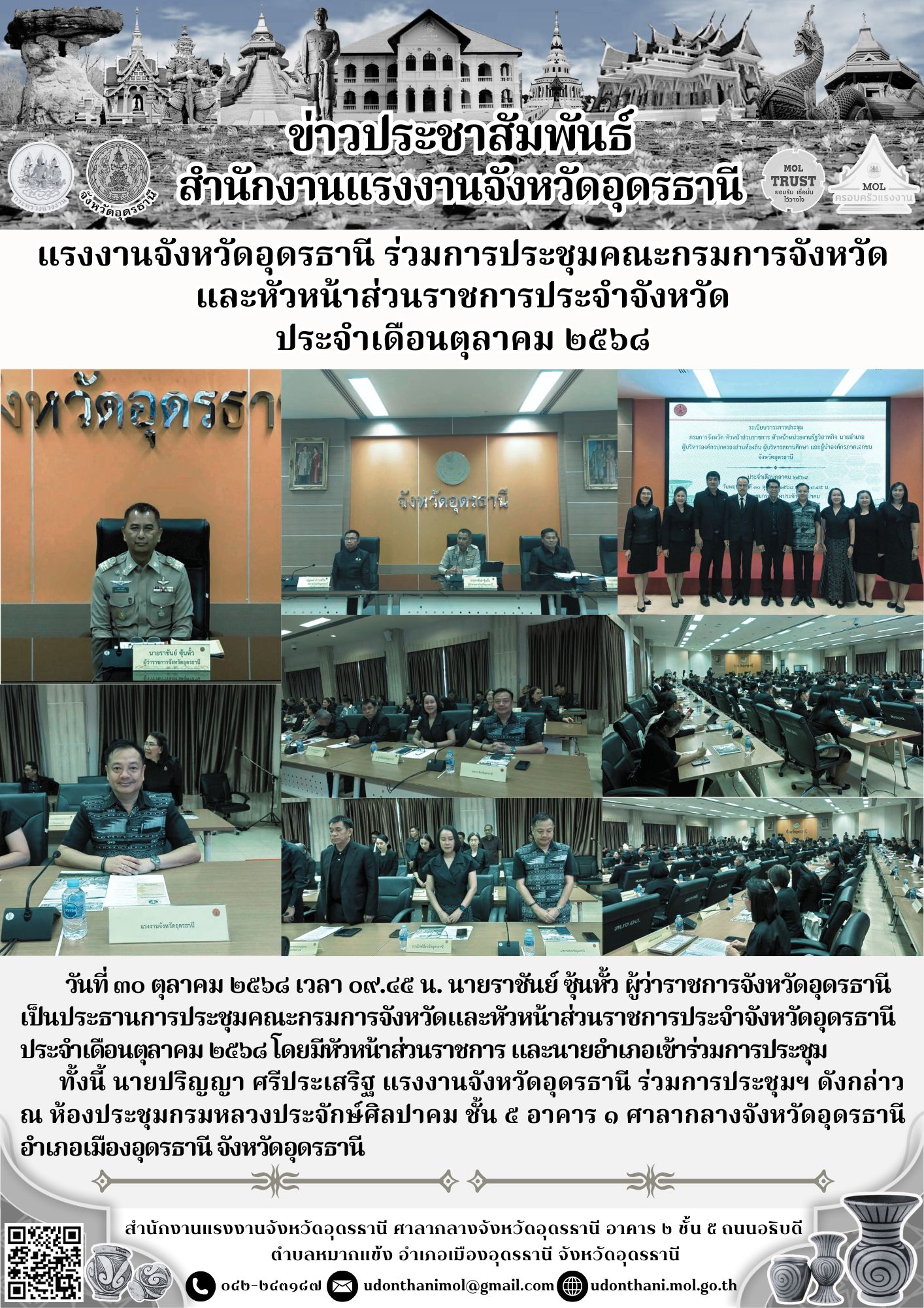 แรงงานจังหวัดอุดรธานี ร่วมการประชุมคณะกรมการจังหวัดและหัวหน้าส่วนราชการประจำจังหวัด ประจำเดือนตุลาคม ๒๕๖๘