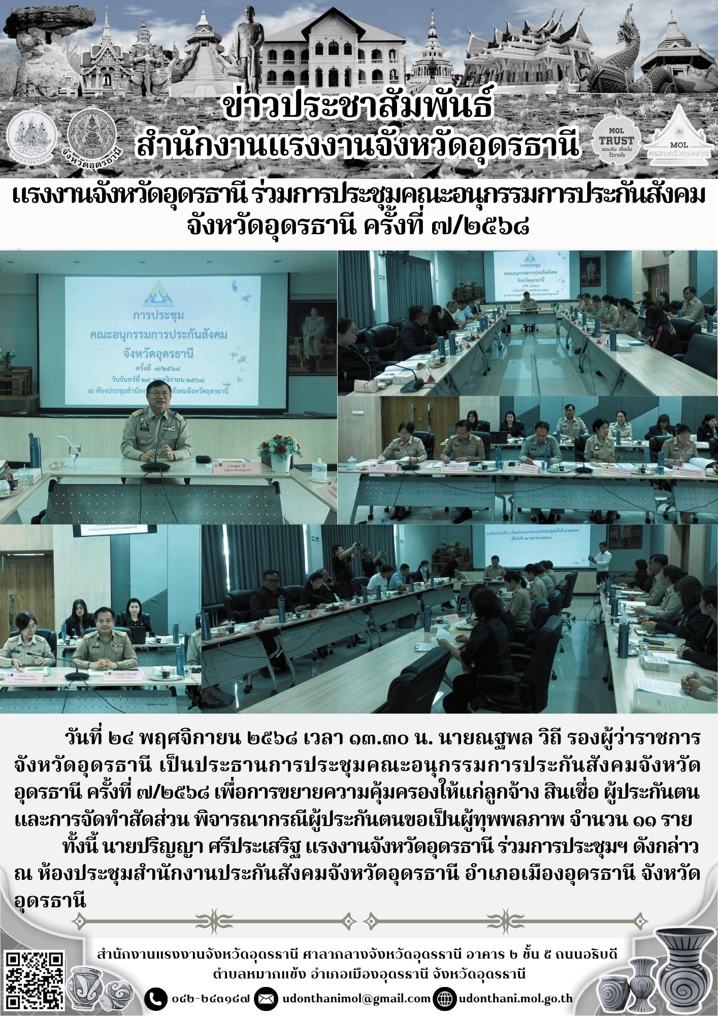 แรงงานจังหวัดอุดรธานี ร่วมการประชุมคณะอนุกรรมการประกันสังคมจังหวัดอุดรธานี ครั้งที่ ๗/๒๕๖๘