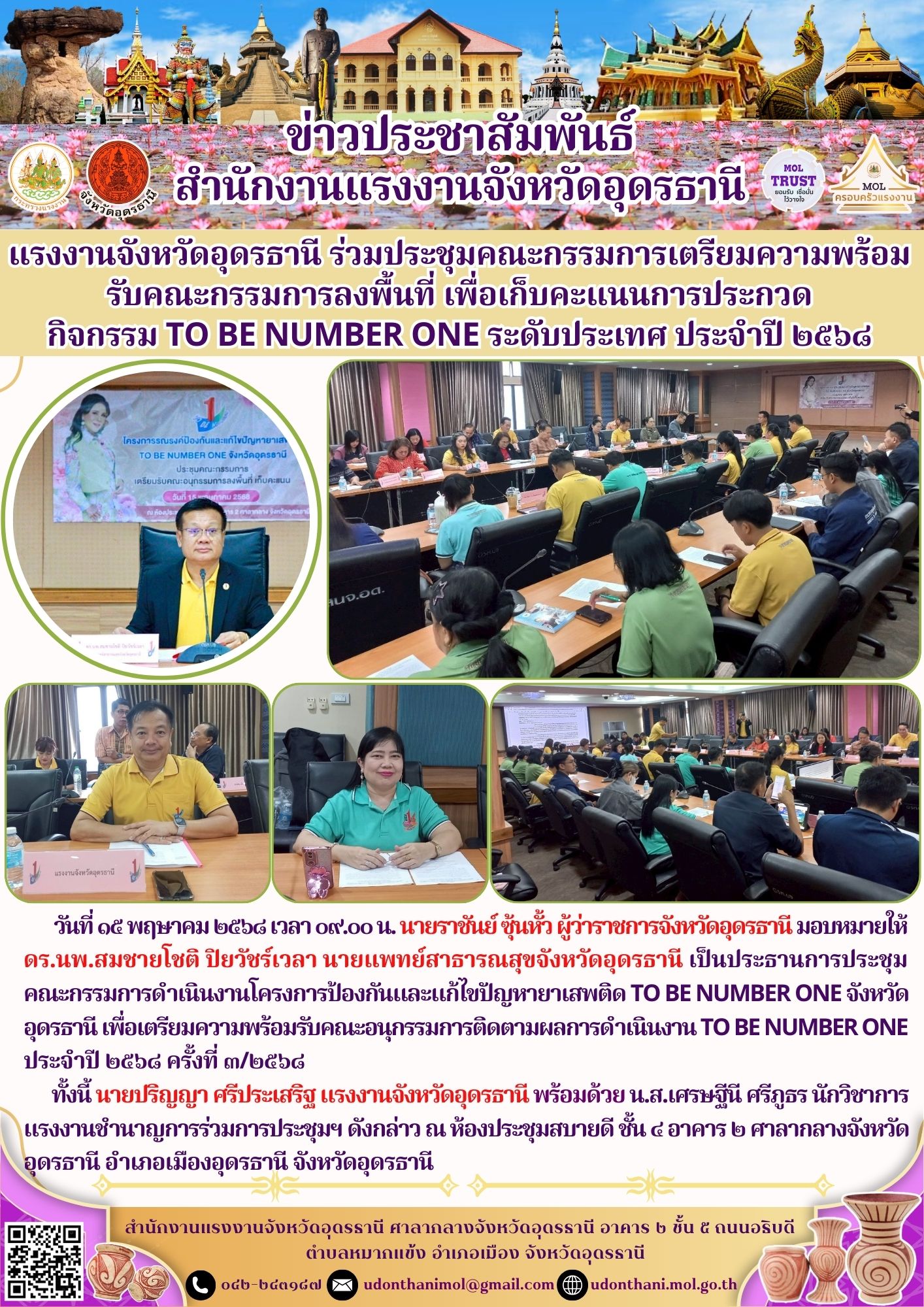 แรงงานจังหวัดอุดรธานี ร่วมประชุมคณะกรรมการเตรียมความพร้อม รับคณะกรรมการลงพื้นที่ เพื่อเก็บคะแนนการประกวด กิจกรรม TO BE NUMBER ONE ระดับประเทศ ประจำปี ๒๕๖๘