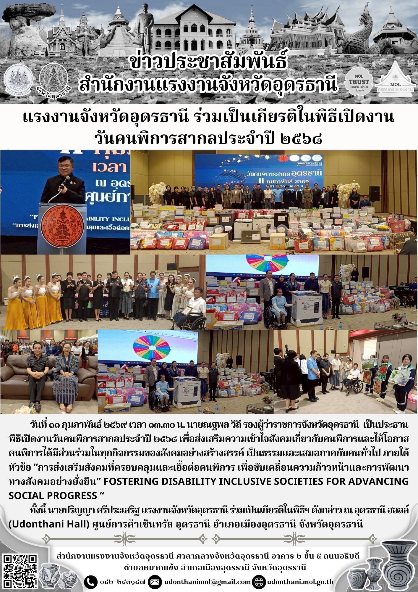 แรงงานจังหวัดอุดรธานี ร่วมเป็นเกียรติในพิธีเปิดงานวันคนพิการสากลประจำปี ๒๕๖๘