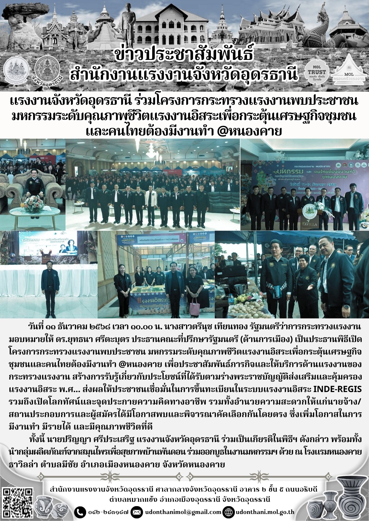 แรงงานจังหวัดอุดรธานี ร่วมโครงการกระทรวงแรงงานพบประชาชน มหกรรมระดับคุณภาพชีวิตแรงงานอิสระเพื่อกระตุ้นเศรษฐกิจชุมชนและคนไทยต้องมีงานทำ @หนองคาย
