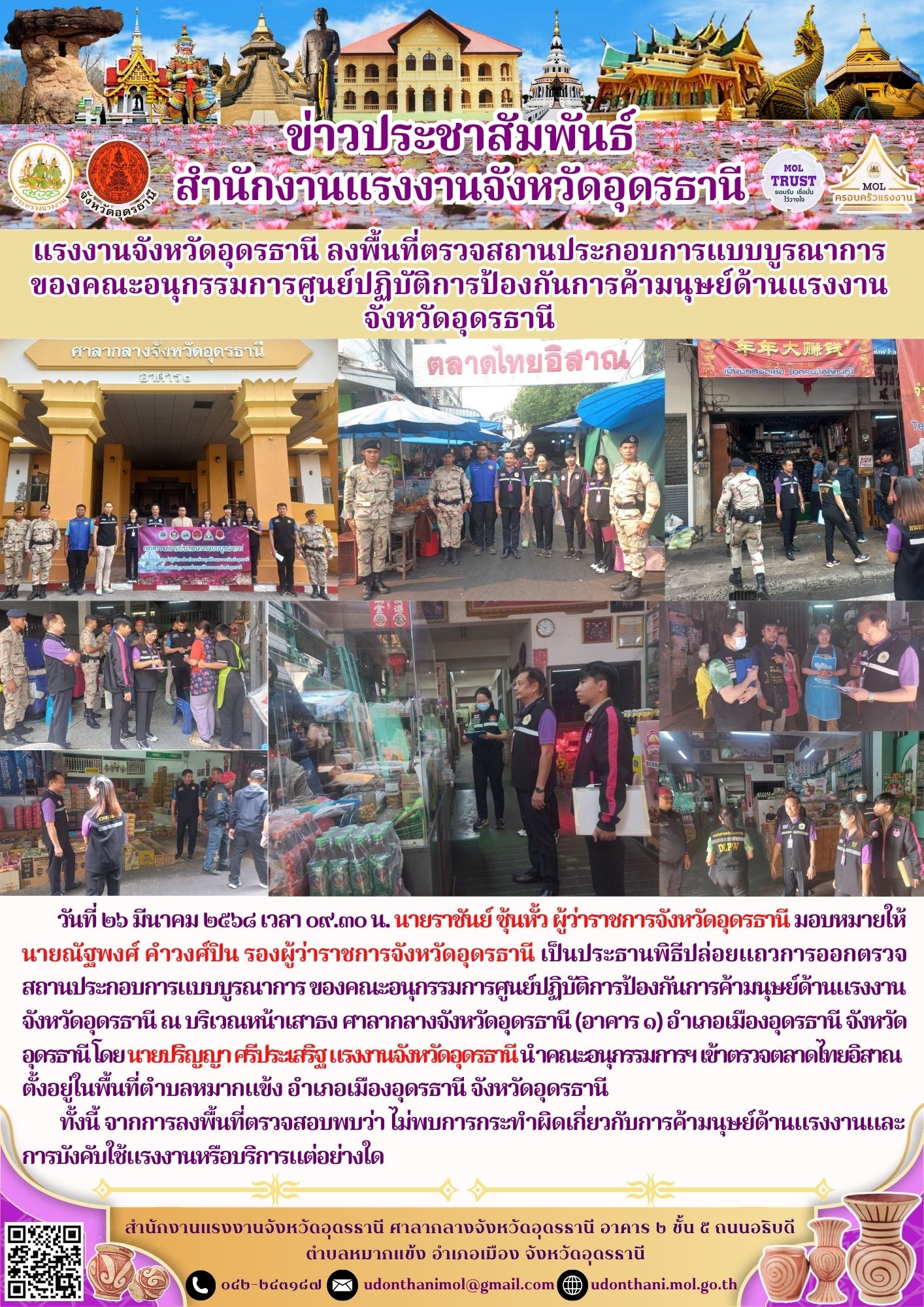 แรงงานจังหวัดอุดรธานี ลงพื้นที่ตรวจสถานประกอบการแบบบูรณาการของคณะอนุกรรมการศูนย์ปฏิบัติการป้องกันการค้ามนุษย์ด้านแรงงาน จังหวัดอุดรธานี