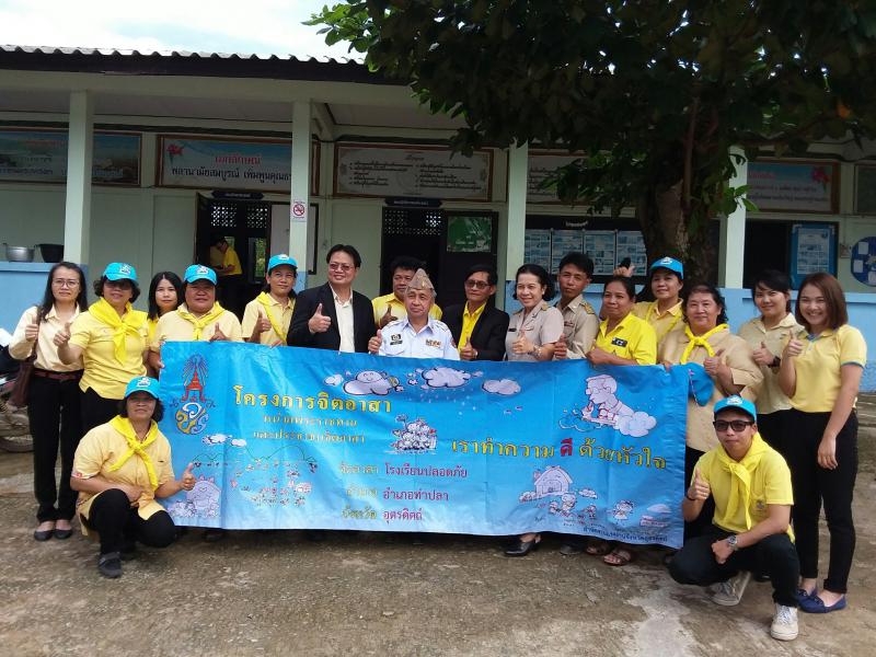 วันจันทร์ที่ 23 กรกฎาคม 2561 เวลา 14.30 น. นางสาวปาริชาติ สวนใจ แรงงานจังหวัดอุตรดิตถ์ พร้อมด้วยเจ้าหน้าที่และอาสาสมัครแรงงานระดับตำบลอำเภอท่าปลา ร่วมกิจกรรมโครงการจิตอาสา "เราทำความ ดี ด้วยหัวใจ" ณ โรงเรียนนิคมสร้างตนเองลำน้ำน่านสงเคราะห์ 1 ตำบลหาดล้า อำเภอท่าปลา โดยมีนายสมบูรณ์ ด่านรัชตกุล นายอำเภอท่าปลา ร่วมชี้แจงให้คำแนะนำเกี่ยวกับภารกิจบทบาทหน้าที่ของอาสาสมัครแรงงานระดับตำบล พร้อมถ่ายภาพร่วมกับโครงการจิตอาสาฯ