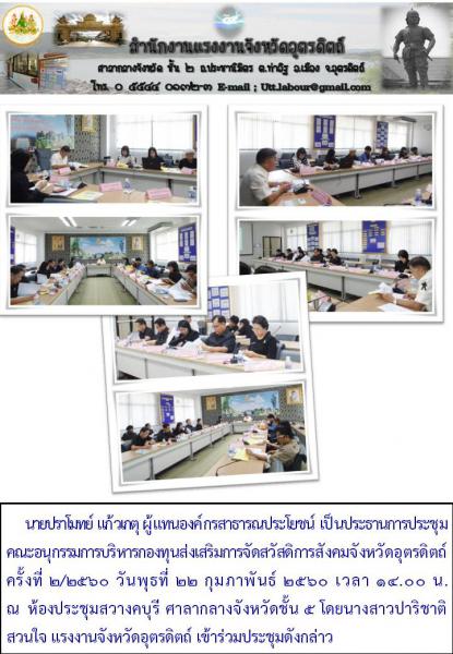 แรงงานจังหวัดอุตรดิตถ์ ร่วมประชุมคณะอนุกรรมการบริหารกองทุนส่งเสริมการจัดสวัสดิการสังคมจังหวัดอุตรดิตถ์