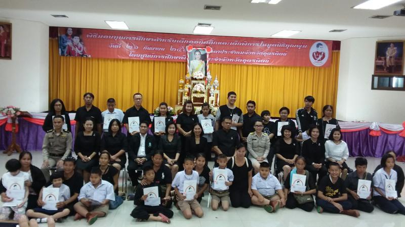 เมื่อวันอังคารที่ 26 กันยายน 2560 เวลา 10.00 น. นางสาวปาริชาติ สวนใจ แรงงานจังหวัดอุตรดิตถ์ ร่วมพิธีมอบทุนการศึกษาสำหรับเด็กออทิสติกและเด็กพิการในมูลนิธิคุณพุ่ม ณ ศาลาประชาคม ศาลากลางจังหวัด อำเภอเมืองอุตรดิตถ์ โดยมีนายธีรวัฒน์ วุฒิคุณ รองผู้ว่าราชการจังหวัดอุตรดิตถ์ เป็นประธานในพิธี