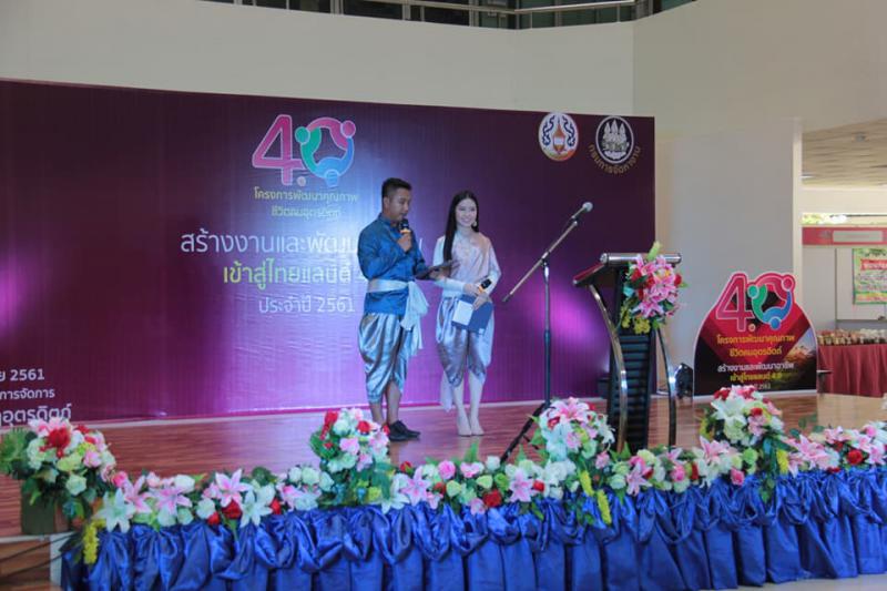 เมื่อวันเสาร์ที่ 21 เมษายน 2561 เวลา 10.00 น. นางสาวปาริชาติ สวนใจ แรงงานจังหวัดอุตรดิตถ์ ร่วมเป็นเกียรติในพิธีเปิดงาน "โครงการพัฒนาคุณภาพชีวิตคนอุตรดิตถ์ " กิจกรรมสร้างงาน และพัฒนาอาชีพเข้าสู่ไทยแลนด์ 4.0 ประจำปี 2561 จัดขึ้นระหว่างวันที่ 21-22 เมษายน 2561 โดยสำนักงานจัดหางานจังหวัดอุตรดิตถ์ ณ อาคารคณะวิทยาการจัดการ ชั้น 1 มหาวิทยาลัยราชภัฎอุตรดิตถ์ ถนนอินใจมี ตำบลท่าอิฐ อำเภอเมือง จังหวัดอุตรดิตถ์ โดยนายสุมิตร เกิดกล่ำ รองผู้ว่าราชการจังหวัดอุตรดิตถ์ เป็นประธานในพิธี ทั้งนี้หน่วยงานสังกัดกระทรวงแรงงานจังหวัดอุตรดิตถ์ ได้ร่วมจัดนิทรรศการฯ ในครั้งนี้ด้วย