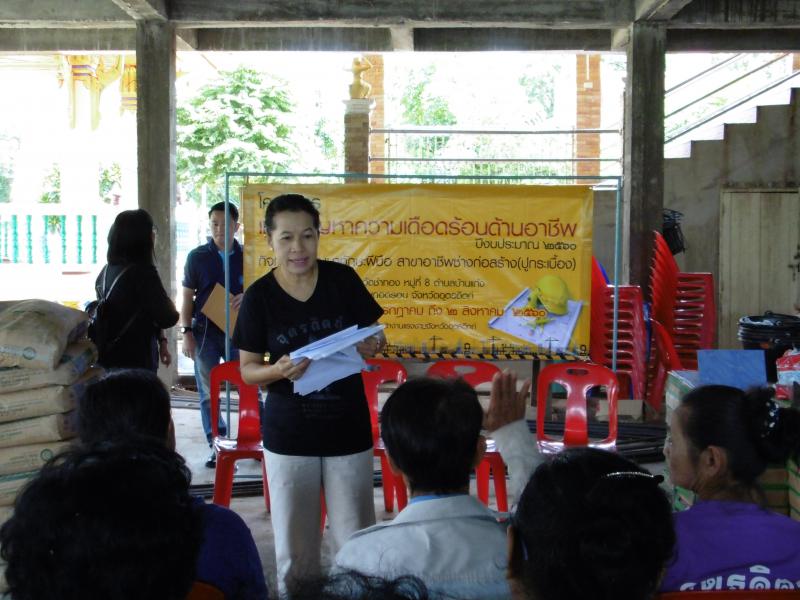 เมื่อวันเสาร์ที่ 29 กรกฎาคม 2560 เวลา 09.00 น. นางสาวปาริชาติ สวนใจ แรงงานจังหวัดอุตรดิตถ์ และนางทัดดาว วงษ์ทัต สวัสดิการและคุ้มครองแรงงานจังหวัดอุตรดิตถ์ เปิดโครงการแก้ไขปัญหาความเดือดร้อนด้านอาชีพ กิจกรรมการพัฒนาทักษะฝีมือ สาขาช่างก่อสร้าง (ปูกระเบื้อง) ณ บ้านชำทอง หมู่ที่ 8 ตำบลบ้านแก่ง อำเภอตรอน จังหวัดอุตรดิตถ์ หลักสูตร ๓๐ ชั่วโมง ระหว่าง วันที่ 29 กรกฎาคม – 2 สิงหาคม 2560 ผู้เข้ารับการฝึก 20 คน