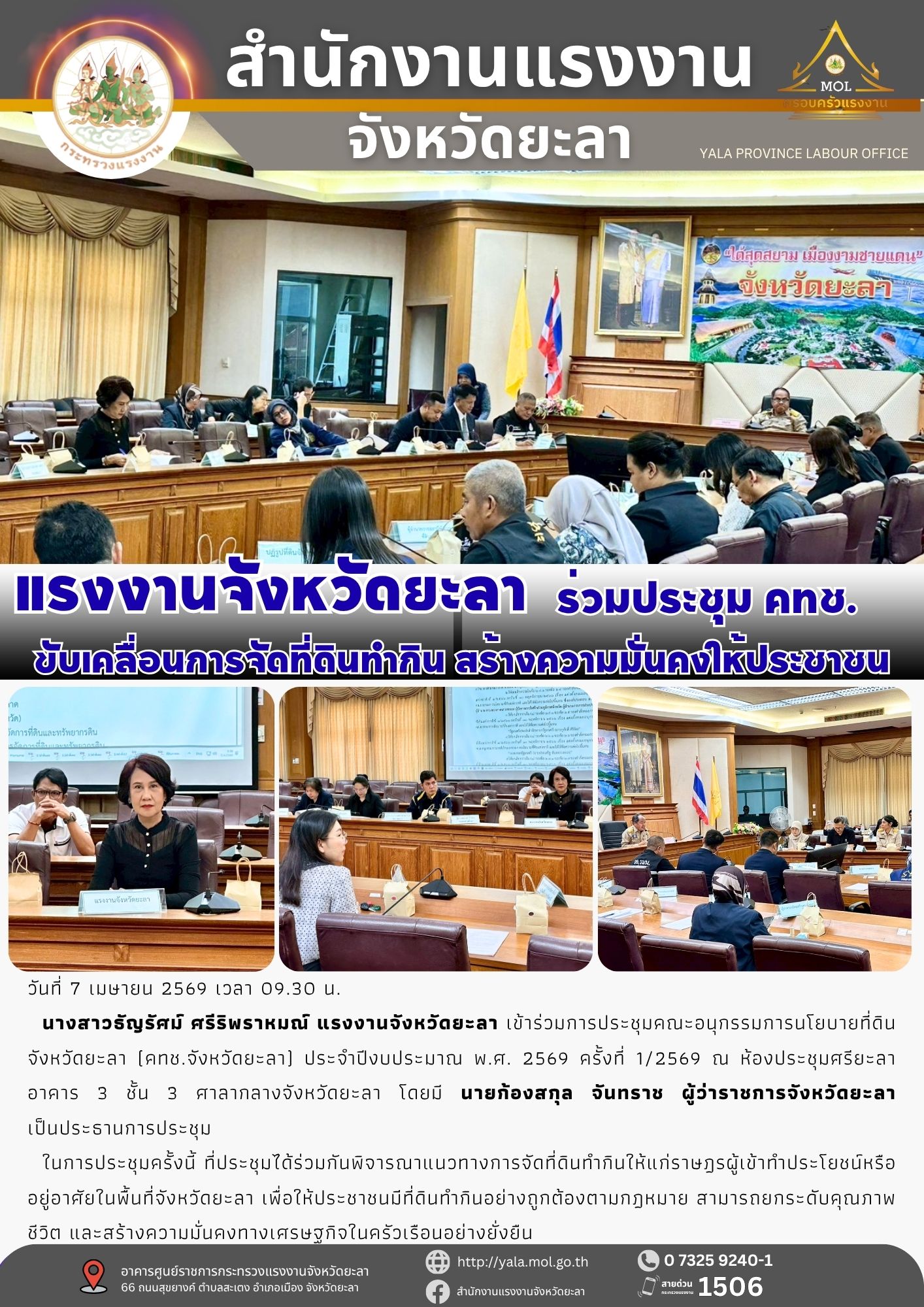 แรงงานจังหวัดยะลา ร่วมประชุม คทช. ขับเคลื่อนการจัดที่ดินทำกิน สร้างความมั่นคงให้ประชาชน