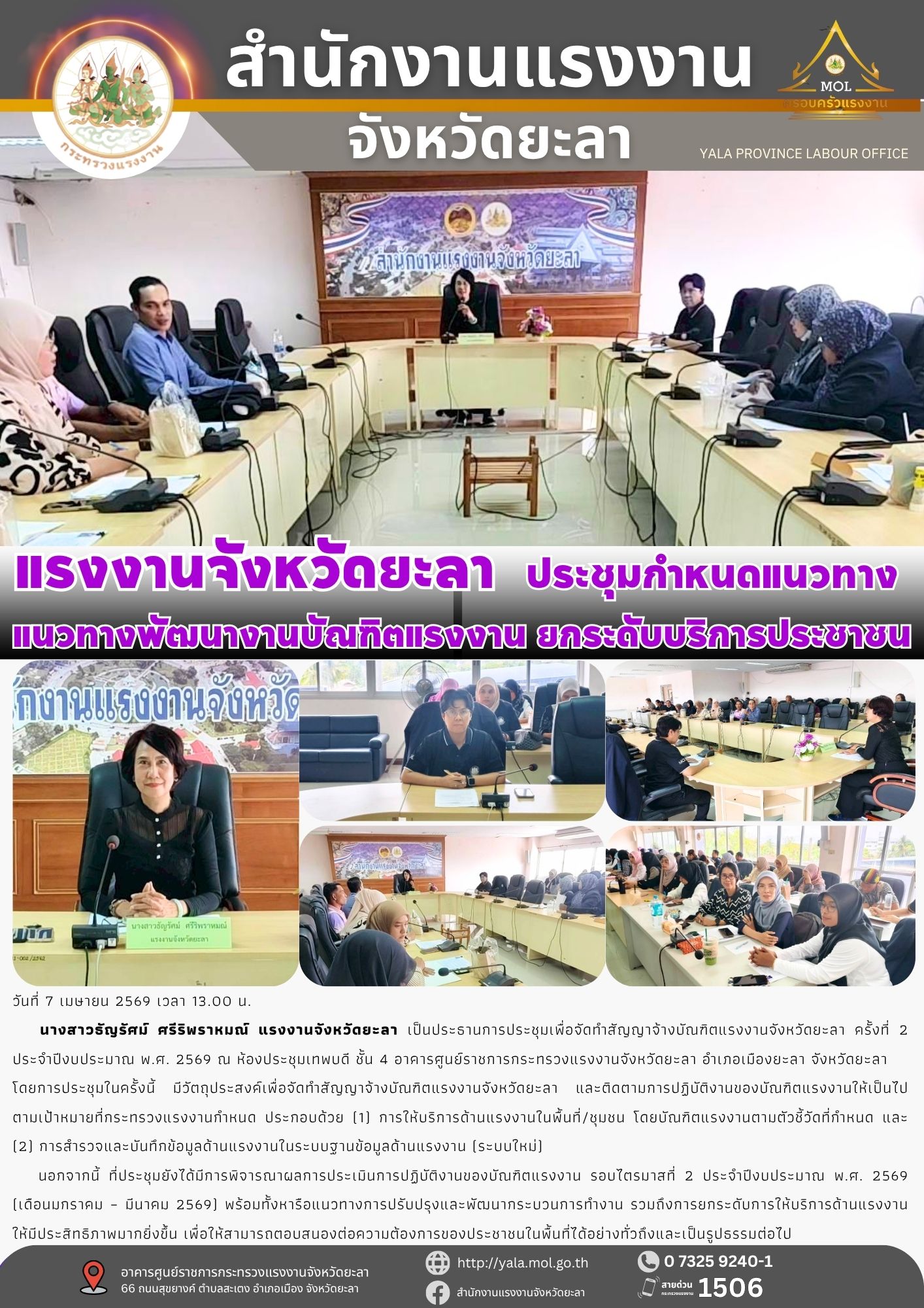 แรงงานจังหวัดยะลา ประชุมกำหนดแนวทางพัฒนางานบัณฑิตแรงงานยกระดับบริการประชาชน