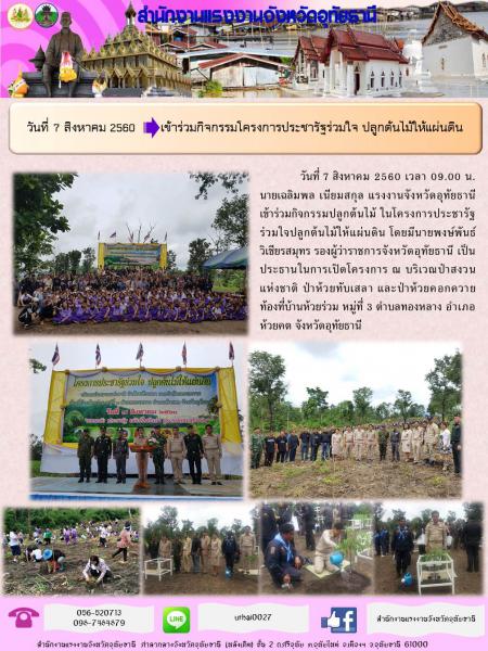 แรงงานจังหวัดอุทัยธานี ร่วมกิจกรรม "โครงการประชารัฐร่วมใจ ปลูกต้นไม้ให้แผ่นดิน"