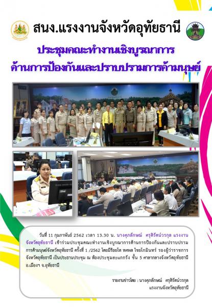 แรงงานจังหวัดอุทัยธานี ร่วมประชุมคณะทำงานเชิงบูรณาการด้านการป้องกันและปราบปรามการค้ามนุษย์