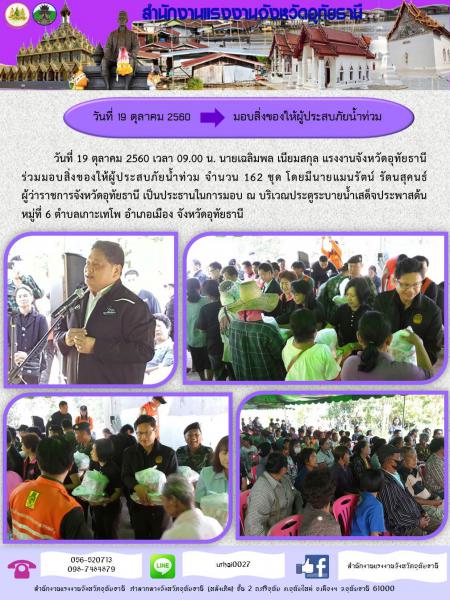 แรงงานจังหวัดอุทัยธานี ร่วมมอบสิ่งของให้ผู้ประสบภัยน้ำท่วม