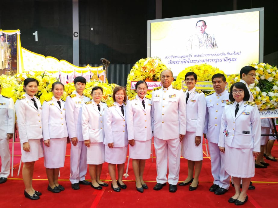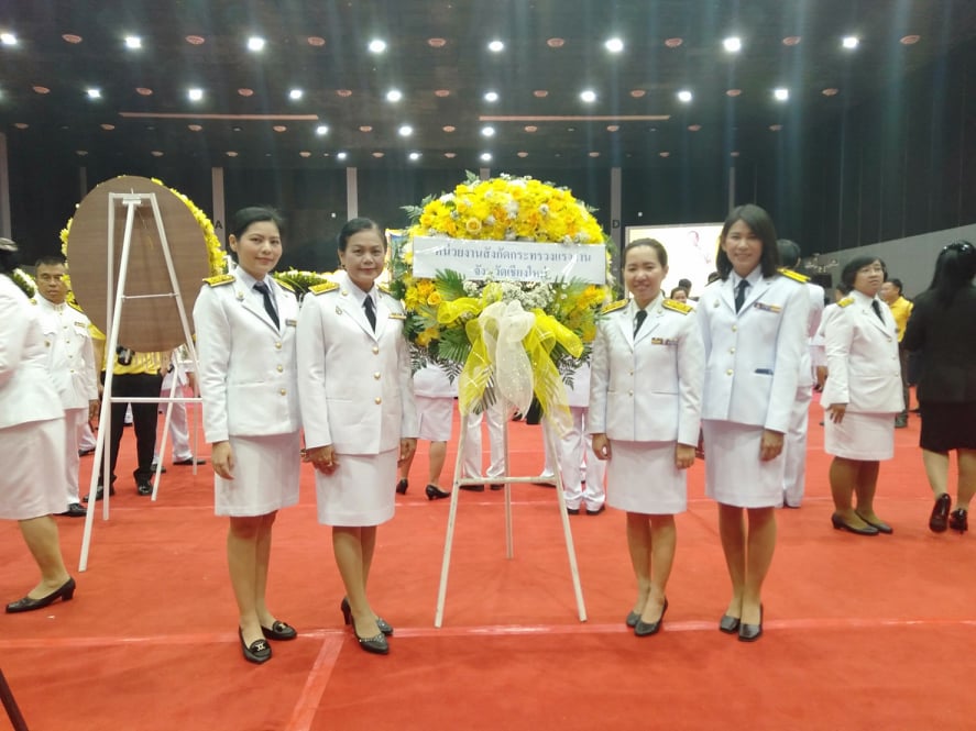 วันอาทิตย์ที่ 13 ตุลาคม 2562 นางวิมุตติยา อาวุธเทวินทร์ แรงงานจังหวัดเชียงใหม่ พร้อมด้วยหัวหน้าส่วนราชการ ข้าราชการเจ้าหน้าที่ หน่วยงานสังกัดกระทรวงแรงงานจังหวัดเชียงใหม่ ร่วมพิธีบำเบ็ญกุศลและพิธีน้อมรำลึกเนื่องในวันคล้ายวันสวรรคตพระบาทสมเด็จพระบรมชนกาธิเบศร มหาภูมิพลอดุลยเดชมหาราช บรมนาถบพิตร ร่วมแสดงความจงรักภักดี และรำลึกในพระมหากรุณาธิคุณ เวลา 07.00 น. พิธีทำบุญตักบาตรถวายเป็นพระราชกุศล ณ โถงด้านหน้าอาคาร ศูนย์ประชุมและแสดงสินค้านานาชาติเฉลิมพระเกียรติ 7 รอบพระชนมพรรษา เวลา 09.00 น. พิธีวางพวงมาลาและถวายบังคมหน้าพระบรมฉายาลักษณ์พระบาทสมเด็จพระบรมชนกาธิเบศร มหาภูมิพลอดุลยเดชมหาราช บรมนาถบพิตร ณ ห้องนิทรรศการ 1 ศูนย์ประชุมและแสดงสินค้านานาชาติเฉลิมพระเกียรติ 7 รอบพระชนมพรรษา เวลา 10.00 น.ร่วมกิจกรรมจิตอาสาพัฒนาปรับภูมิทัศน์ ทำความสะอาดลำน้ำ คูคลอง บริเวณสะพานข้ามคลองแม่ข่า ถนนสมโภชเชียงใหม่ 700 ปี และเวลา 18.30 น. ร่วมพิธีจุดเทียนเพื่อน้อมรำลึกในพระกรุณาธิคุณฯ ณ บริเวณข่วงประตูท่าแพ อำเภอเมืองเชียงใหม่ จังหวัดเชียงใหม่