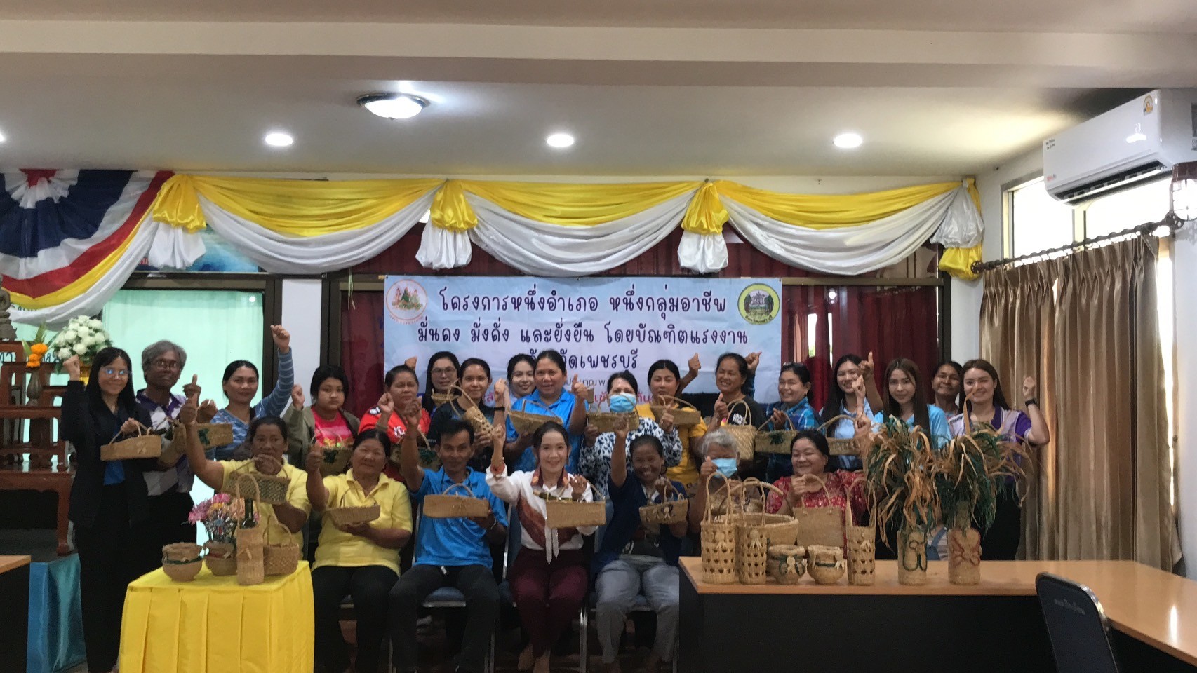 วันศุกร์ที่ 7 มีนาคม พ.ศ. 2568 นางสาวอนงค์นาถ มีศิริแรงงานจังหวัดเพชรบุรี ลงพื้นที่ปิดกิจกรรม ‘โครงการหนึ่งอำเภอ หนึ่งกลุ่มอาชีพ มั่นคง มั่งคั่ง และยั่งยืน โดยบัณฑิตแรงงานอำเภอท่ายาง‘ ประจำปีงบประมาณ พ.ศ. 2568 หลักสูตร ‘การสานกระเช้าจากต้นธูปฤๅษี’ ซึ่งได้ ดำเนินการระหว่างวันที่ 5 – 7 มีนาคม 2568 ณ องค์การบริหารส่วนตำบลปึกเตียน ตำบลปึกเตียน อำเภอท่ายาง จังหวัดเพชรบุรี