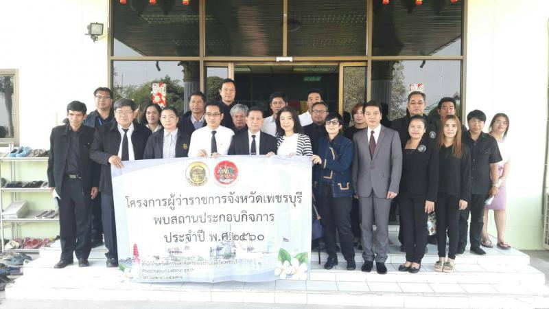 เมื่อวันศุกร์ที่ 3 มีนาคม พุทธศักราช 2560 เวลา 13.30 น. แรงงานจังหวัดเพชรบุรี(นายสิทธิอุดม หนูฤทธิ์) ร่วมตรวจเยี่ยมสถานประกอบกิจการ ณ บริษัท เอ็มเมอรัลด์ นอนวูเว่น อินเตอร์เนชั่นแนล จำกัด เลขที่ 88 และ 88/1 หมู่ที่ 2 ตำบลหนองชุมพลเหนือ อำเภอเขาย้อย จังหวัดเพชรบุรี โดยมีรองผู้ว่าราชการจังหวัดเพชรบุรี(นายณัฐวุฒิ เพ็ชรพรหมศร) เป็นหัวหน้าคณะนำหัวหน้าหน่วยงานสังกัดกระทรวงแรงงาน และหน่วยงานที่เกี่ยวข้อง เข้าตรวจเยี่ยม พร้อมให้คำแนะนำผู้บริหารบริษัทฯ ตามโครงการผู้ว่าราชการจังหวัดเพชรบุรีพบสถานประกอบกิจการ ประจำปี พ.ศ.2560