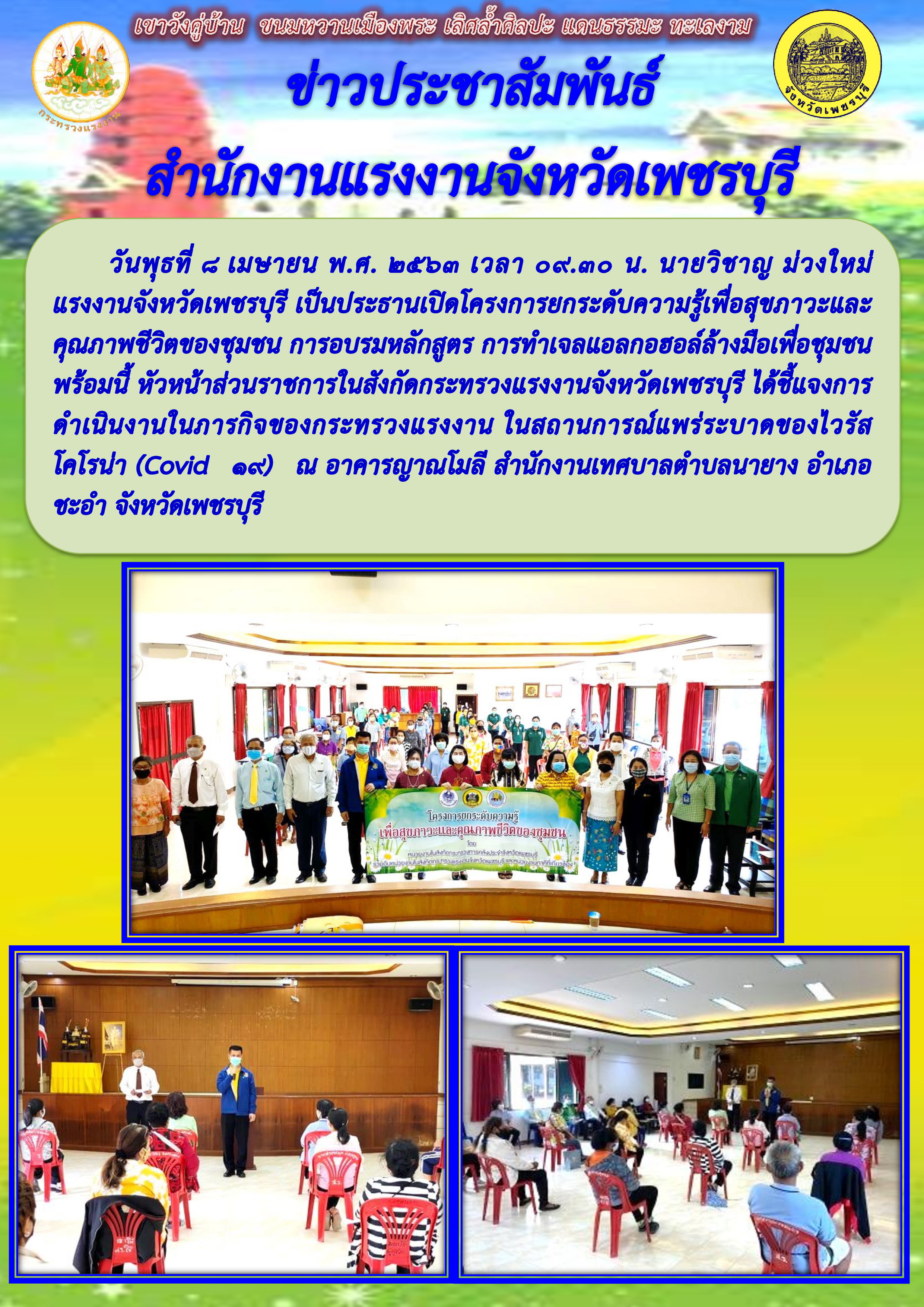 แรงงานจังหวัดเพชรบุรี เปิดโครงการฝึกอบรมทำเจลแอลกอฮอล์