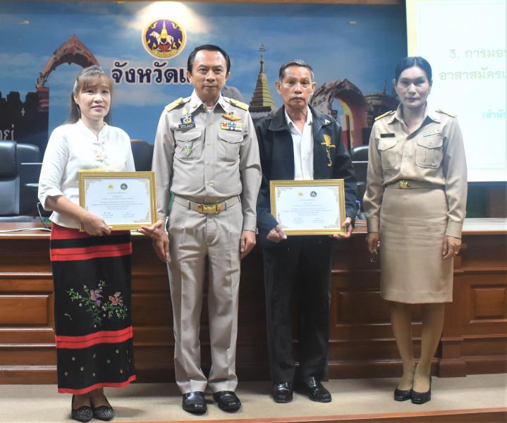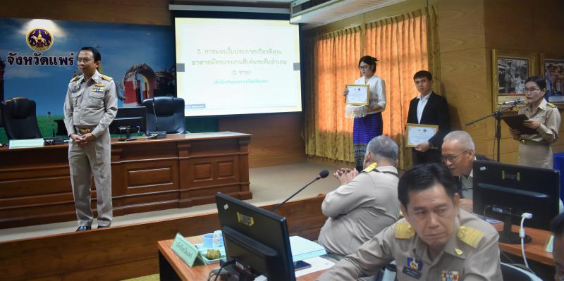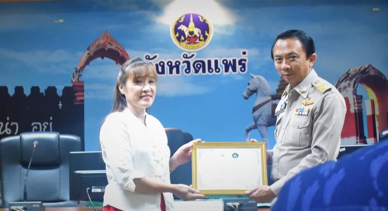 วันนี้ (28 มิถุนายน 2561) เวลา 09.00 น. นางสาวปราณี ชลารักษ์ แรงงานจังหวัดแพร่ นำนางขวัญดาว สุทธนะ อาสาสมัครแรงงาน ตำบลร่องฟอง อำเภอเมืองแพร่ และนายหวัง เสนาป่า อาสาสมัครแรงงาน ตำบลแม่จั๊วะ อำเภอเด่นชัย เข้ารับใบประกาศเกียรติคุณ อาสาสมัครแรงงานดีเด่นระดับอำเภอ จังหวัดแพร่ ประจำปีงบประมาณ พ.ศ.2561 จากนายพงศ์รัตน์ ภิรมย์รัตน์ ผู้ว่าราชการจังหวัดแพร่ ในที่ประชุมคณะกรรมการจังหวัดแพร่ และหัวหน้าส่วนราชการฯ ครั้งที่ 6/2561 ณ ห้องประชุมจดหมายเหตุ ศาลากลางชั้น 2 อำเภอเมือง จังหวัดแพร่