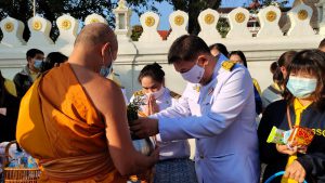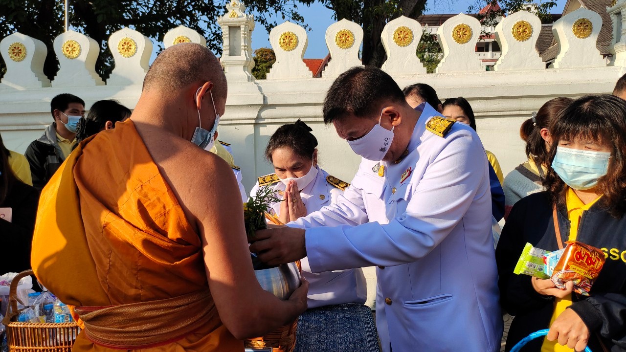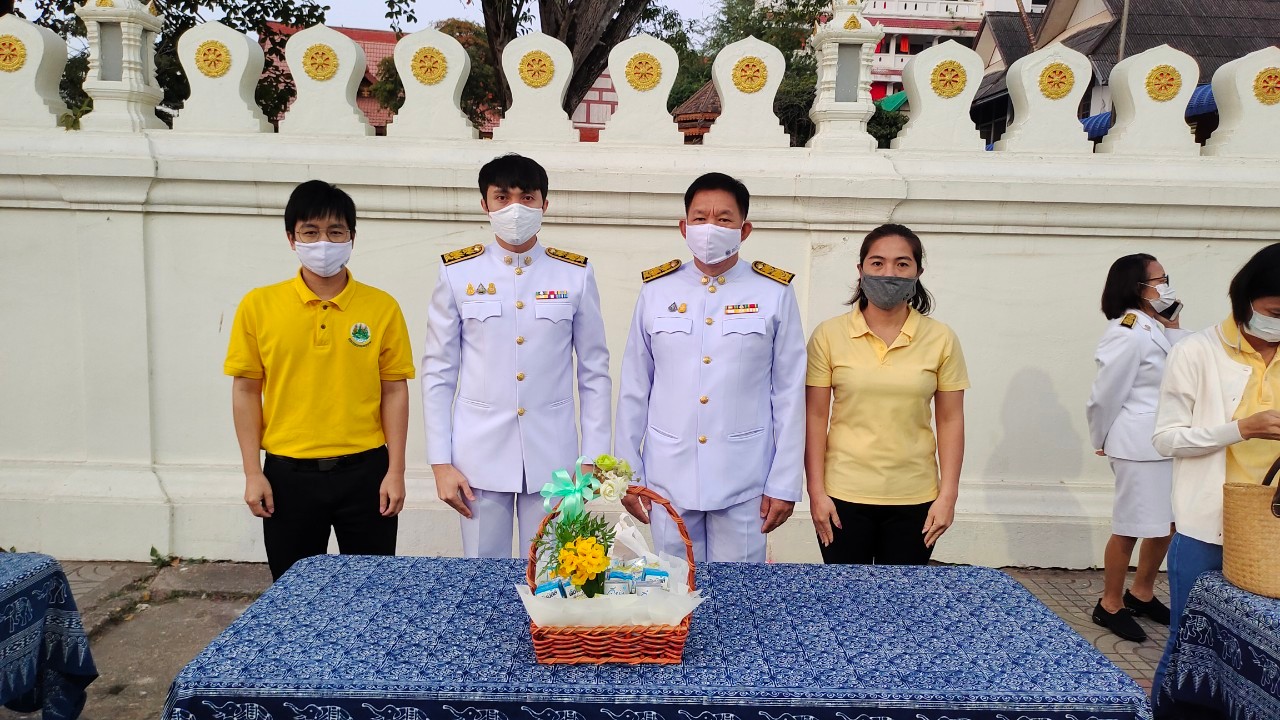 ร่วมกิจกรรมเนื่องในวันคล้ายวันพระบรมราชสมภพ พระบาทสมเด็จพระบรมชนกาธิเบศร มหาภูมิพลอดุลยเดชมหาราช บรมนาถบพิตร วันชาติ และวันพ่อแห่งชาติ 5 ธันวาคม 2563 พิธีทำบุญตักบาตรถวายพระราชกุศล ณ ศาลาพุทธสถาน วัดพระบาทมิ่งเมืองวรวิหาร ตำบลในเวียง อำเภอเมืองแพร่