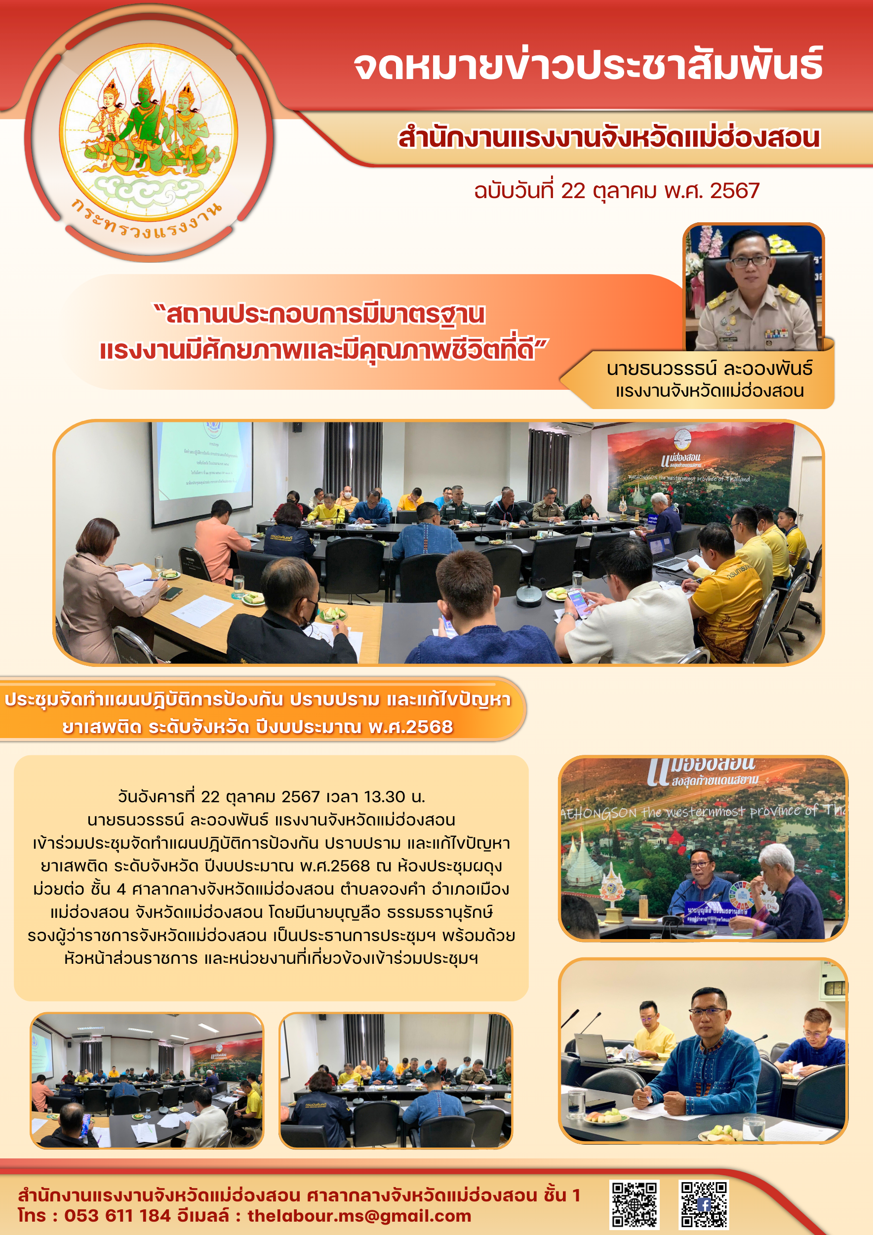 สรจ.แม่ฮ่องสอน เข้าร่วมประชุมจัดทำแผนปฏิบัติการป้องกัน ปราบปราม และแก้ไขปัญหายาเสพติด ระดับจังหวัด ปีงบประมาณ พ.ศ.2568