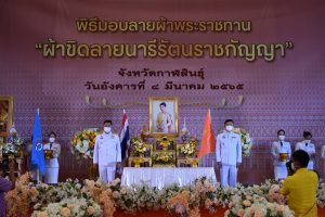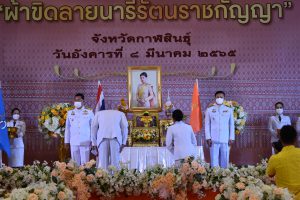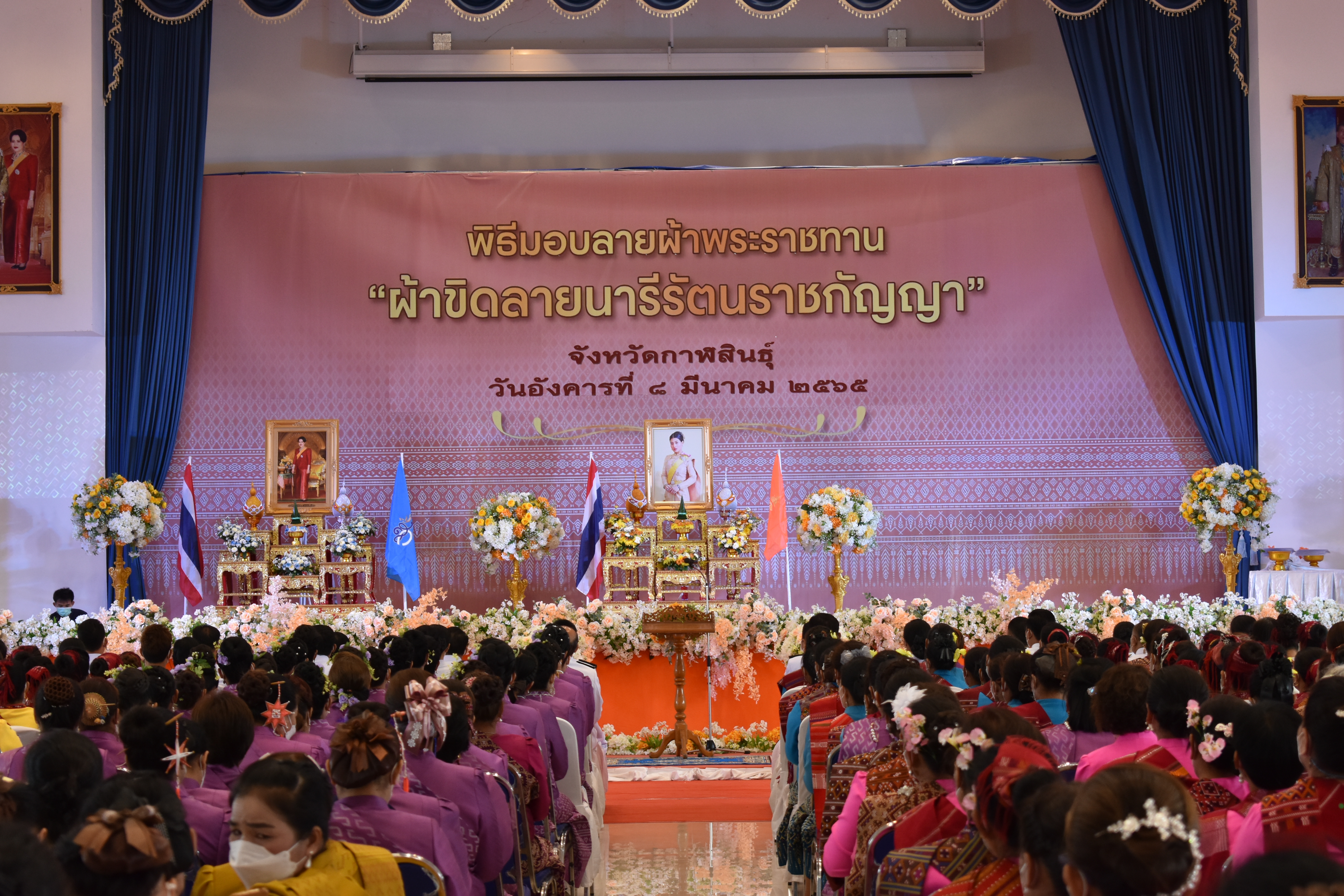 วันอังคารที่ 8 มีนาคม พ.ศ. 2565 จังหวัดกาฬสินธุ์ โดยสำนักงานพัฒนาชุมชนจังหวัดกาฬสินธุ์ จัดกิจกรรมพิธีมอบลายผ้าพระราชทาน “ผ้าขิดลายนารีรัตนราชกัญญา” จังหวัดกาฬสินธุ์ และวันสตรีสากล จังหวัดกาฬสินธุ์ 2565 ณ หอประชุมจังหวัดกาฬสินธุ์ ศูนย์ราชการจังหวัดกาฬสินธุ์ อำเภอเมือง จังหวัดกาฬสินธุ์ ในการนี้ นางพนิดา เสถียรจิตร แรงงานจังหวัดกาฬสินธุ์ และส่วนราชการ ร่วมกิจกรรมดังกล่าว โดยมีนายทรงพล ใจกริ่ม ผู้ว่าราชการจังหวัดกาฬสินธุ์ เป็นประธาน