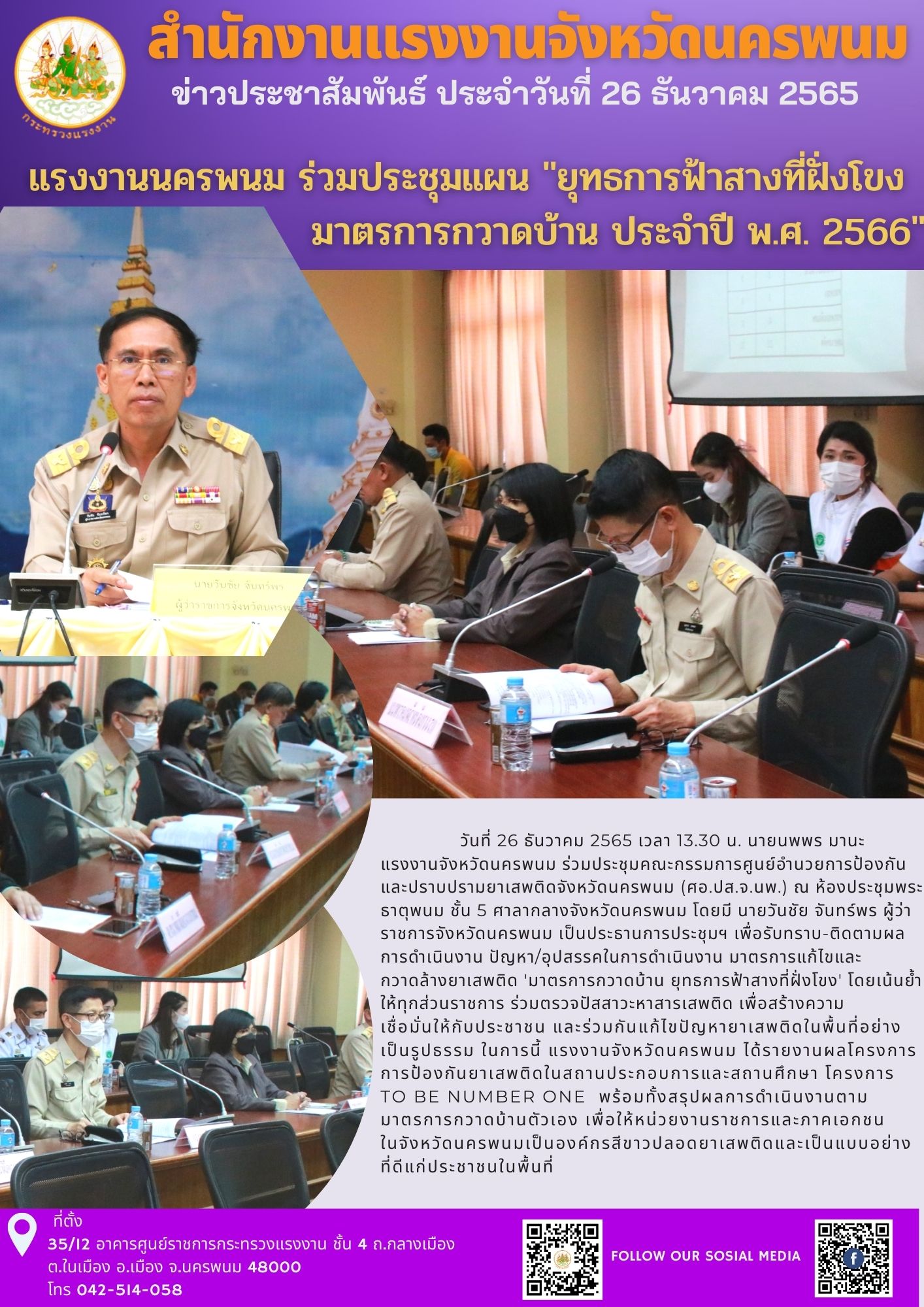แรงงานนครพนม ร่วมประชุมแผน “ยุทธการฟ้าสางที่ฝั่งโขง มาตรการกวาดบ้าน ประจำปี พ.ศ. 2566”