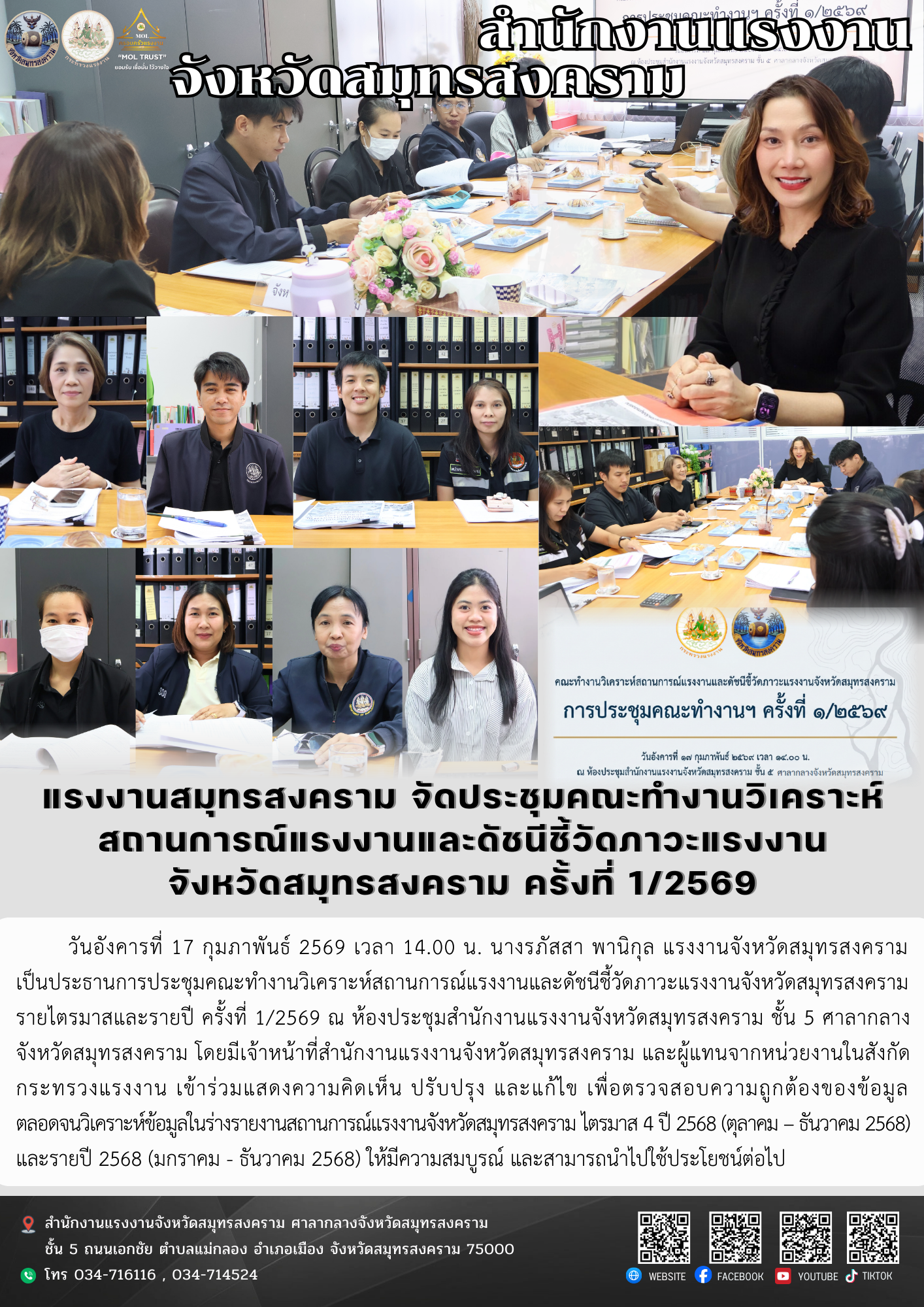 วันอังคารที่ 17 กุมภาพันธ์ 2569 เวลา 14.00 น. นางรภัสสา พานิกุล แรงงานจังหวัดสมุทรสงคราม