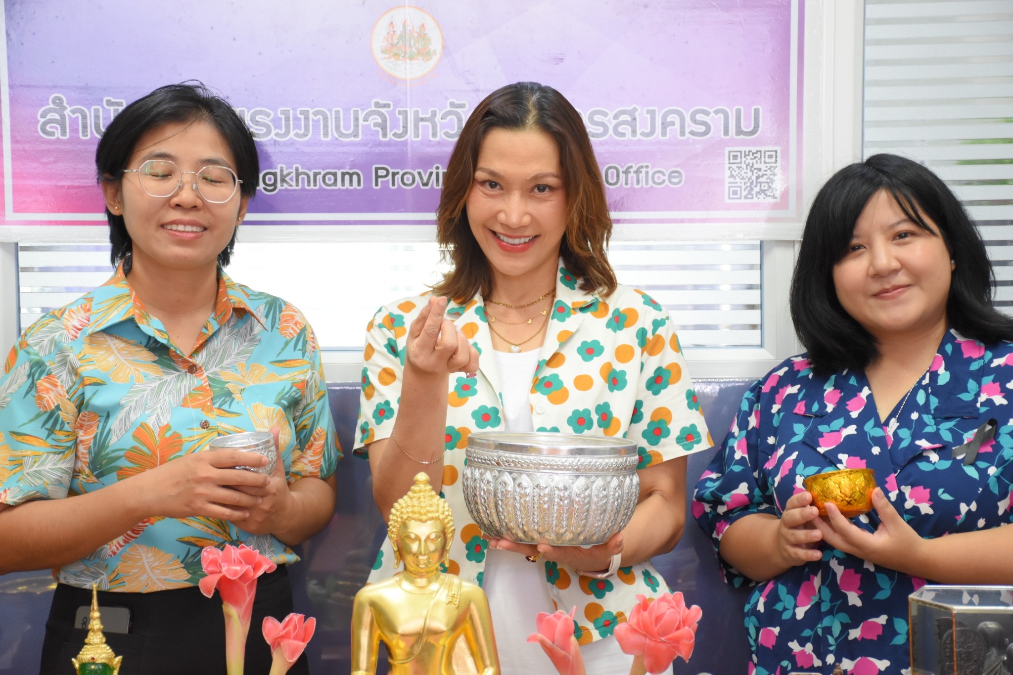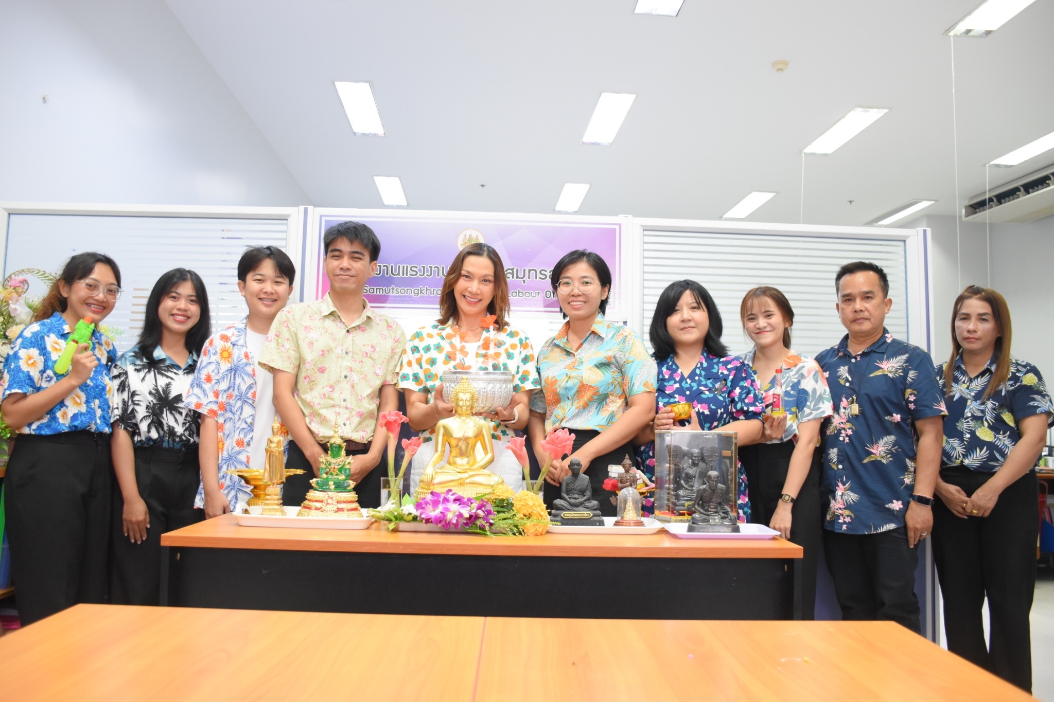 วันศุกร์ที่ 10 เมษายน 2569 เวลา 10.45 น. นางรภัสสา พานิกุล แรงงานจังหวัดสมุทรสงคราม นำข้าราชการ เจ้าหน้าที่ และบัณฑิตแรงงาน สรงน้ำขอพรพระ สืบสานประเพณีเนื่องในเทศกาลสงกรานต์ 2569 เพื่อเป็นการสืบสานรักษาประเพณีอันดีงามปีใหม่ไทย พร้อมกันนี้ ได้อวยพรให้ข้าราชการ เจ้าหน้าที่ และบัณฑิตแรงงานทุกท่าน มีสุขภาพกายใจแข็งแรง ปฏิบัติงานโดยตั้งมั่นอยู่บนความซื่อสัตย์ สุจริต และเน้นย้ำให้มีความระมัดระวังการเดินทางในช่วงเทศกาลสงกรานต์ ขับขี่ปลอดภัยสวมหมวกนิรภัย และปฏิบัติตามกฎจราจรในการใช้รถใช้ถนนอย่างเคร่งครัด