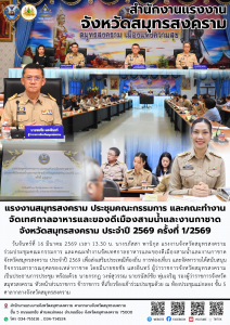 วันจันทร์ที่ 16 มีนาคม 2569 เวลา 13.30 น. นางรภัสสา พานิกุล แรงงานจังหวัดสมุทรสงคราม ร่วมประชุมคณะกรรมการ และคณะทำงานจัดเทศกาลอาหารและของดีเมืองสามน้ำและงานกาชาดจังหวัดสมุทรสงคราม ประจำปี 2569 เพื่อส่งเสริมประเพณีท้องถิ่น การท่องเที่ยว และจัดหารายได้สนับสนุนกิจกรรมสาธารณกุศลของเหล่ากาชาด โดยมีนายชยชัย แสงอินทร์ ผู้ว่าราชการจังหวัดสมุทรสงคราม เป็นประธานการประชุม พร้อมด้วย นายกรกฎ วงษ์สุวรรณ นายรนัสถ์ชัย พุ่มเจริญ รองผู้ว่าราชการจังหวัดสมุทรสงคราม หัวหน้าส่วนราชการ ข้าราชการ ที่เกี่ยวข้องเข้าร่วมประชุมด้วย ณ ห้องประชุมแม่กลอง ชั้น 5 ศาลากลางจังหวัดสมุทรสงคราม