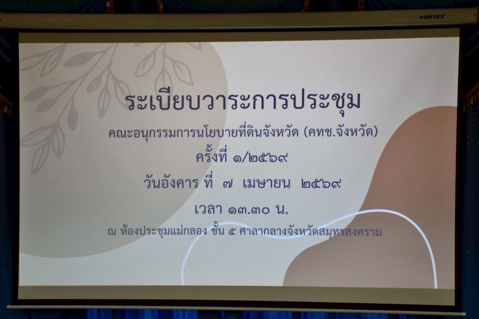 วันอังคารที่ 7 เมษายน 2569 เวลา 13.30 น. นางรภัสสา พานิกุล แรงงานจังหวัดสมุทรสงคราม ร่วมประชุมคณะอนุกรรมการนโยบายที่ดินจังหวัดสมุทรสงคราม (คทช.จังหวัด) ครั้งที่ 1/2569 เพื่อพิจารณารับรองรายชื่อทายาทผู้ขอรับโอนมรดกสิทธิครอบครองที่ดิน ที่ได้รับอนุญาตทำประโยชน์ในพื้นที่ป่าชายเลน โดยมี นายกรกฎ วงษ์สุวรรณ รองผู้ว่าราชการจังหวัดสมุทรสงคราม เป็นประธานการประชุม พร้อมด้วย หัวหน้าส่วนราชการ ข้าราชการ เจ้าหน้าที่ เข้าร่วมประชุม ณ ห้องประชุมแม่กลอง ชั้น 5 ศาลากลางจังหวัดสมุทรสงคราม