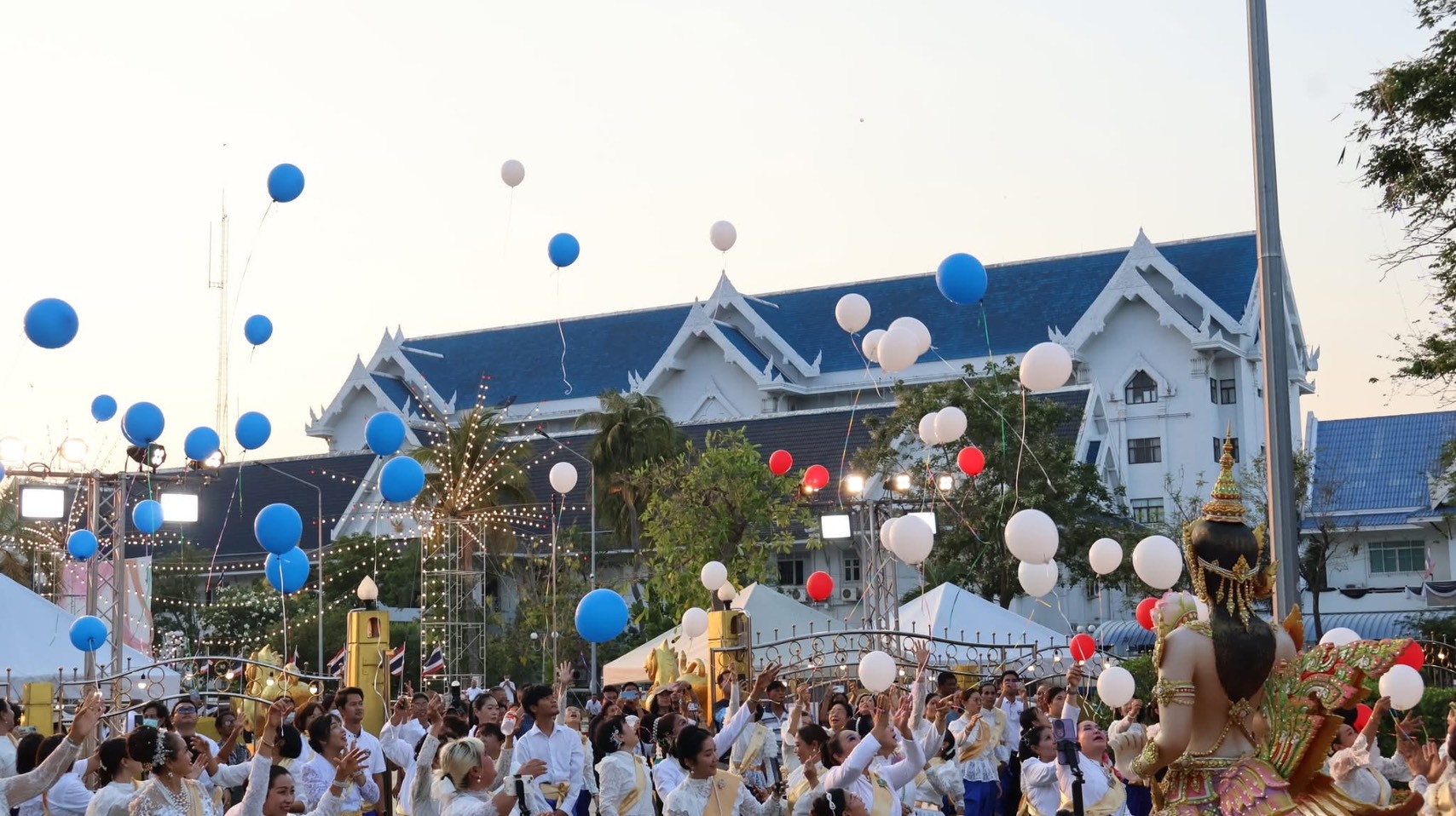 และมีการปล่อยลูกโป่งสามสี ได้แก่ สีแดง สีขาว และสีน้ำเงิน เพื่อเฉลิมฉลองในโอกาสสำคัญดังกล่าว