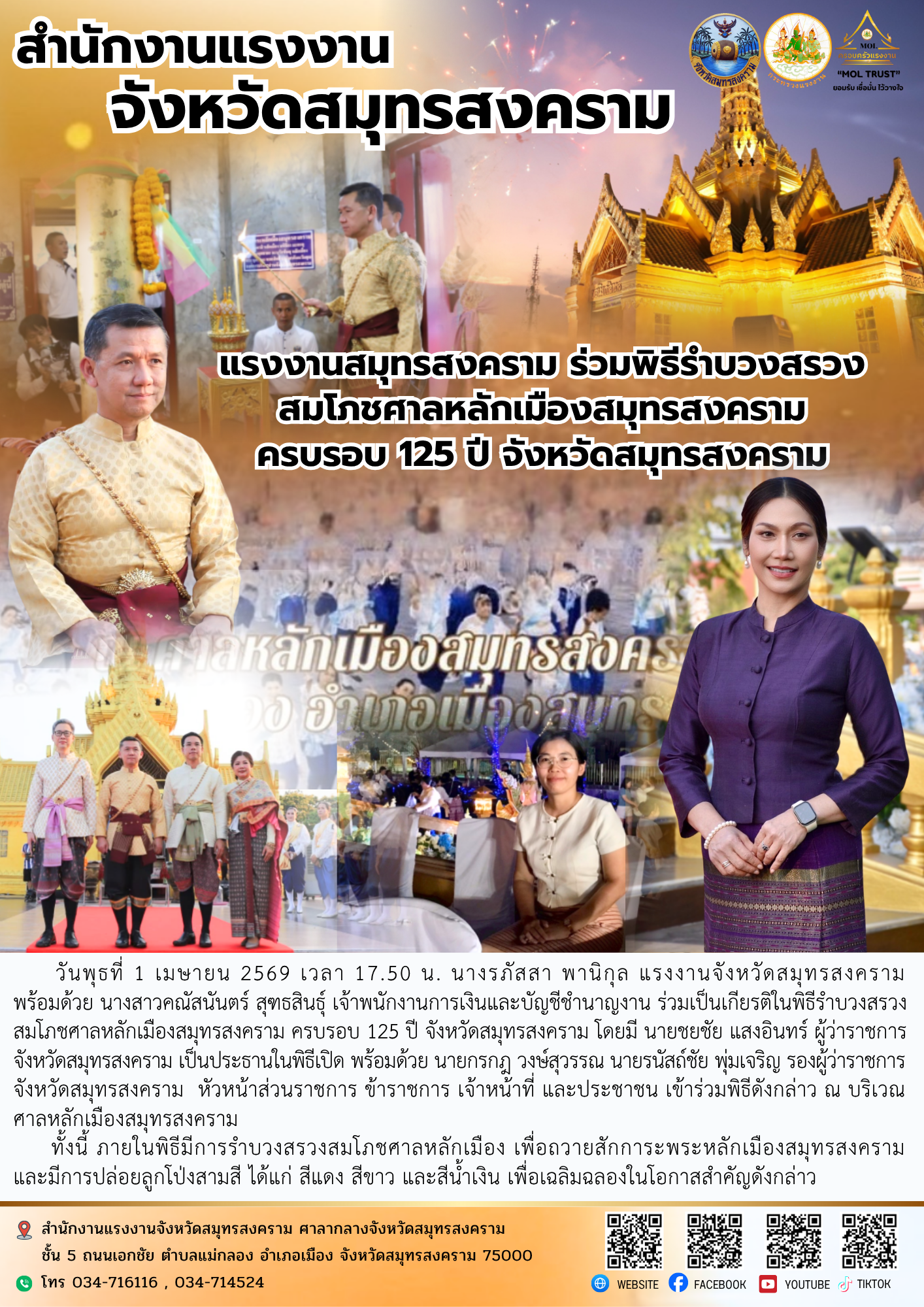 วันพุธที่ 1 เมษายน 2569 เวลา 17.50 น. นางรภัสสา พานิกุล แรงงานจังหวัดสมุทรสงคราม
