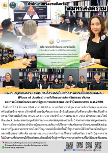 วันจันทร์ที่ 23 มีนาคม 2569 เวลา 09.00 น. นางรภัสสา พานิกุล แรงงานจังหวัดสมุทรสงคราม พร้อมด้วยข้าราชการ เจ้าหน้าที่ และบัณฑิตแรงงาน เข้าร่วมกิจกรรมรับฟังความคิดเห็นเพื่อสร้างความเป็นธรรมในสังคม (Place of Justice) ประจำปีงบประมาณ พ.ศ. 2569 ผ่านระบบออนไลน์ (Facebook Live) ณ ห้องประชุมสำนักงานแรงงานจังหวัดสมุทรสงคราม ชั้น 5 ศาลากลางจังหวัดสมุทรสงคราม กิจกรรมดังกล่าวจัดโดย สำนักงานผู้ตรวจการแผ่นดิน ภายใต้โครงการส่งเสริมธรรมาภิบาลและการมีส่วนร่วมของภาครัฐและภาคประชาชน โดยมีวัตถุประสงค์เพื่อเปิดพื้นที่ให้ทุกภาคส่วนได้ร่วมกันสะท้อนปัญหาแลกเปลี่ยนความคิดเห็น และเสนอแนะแนวทางในการแก้ไขความเดือดร้อน รวมถึงปัญหาความไม่เป็นธรรมที่ประชาชนได้รับอย่างรอบด้าน เพื่อนำไปสู่การพัฒนาระบบการทำงานที่โปร่งใสและเป็นธรรม