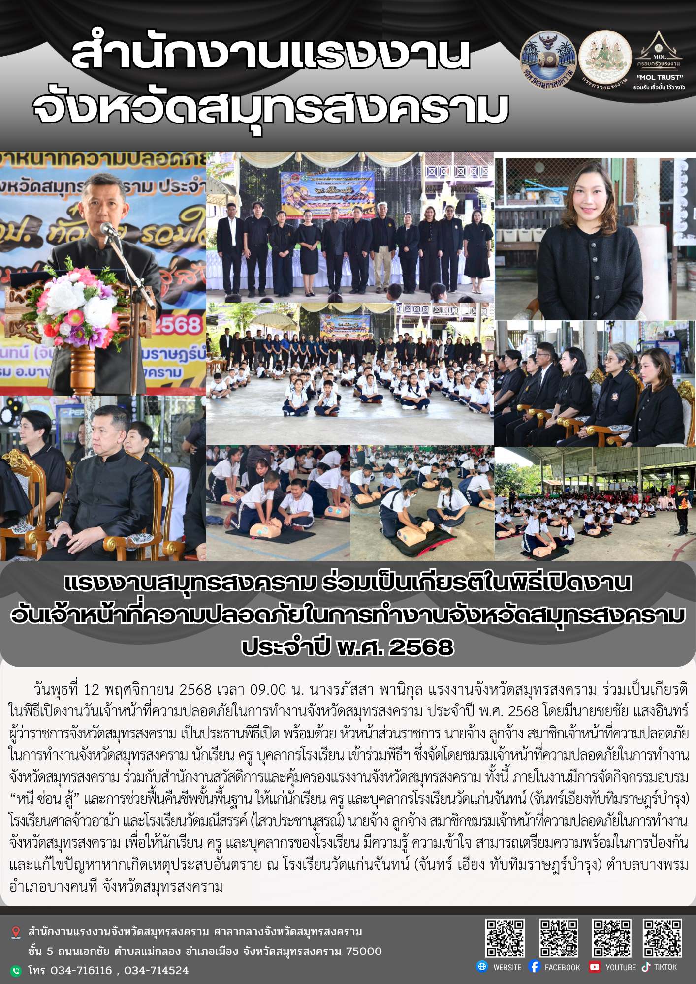 ในพิธีเปิดงานวันเจ้าหน้าที่ความปลอดภัยในการทำงานจังหวัดสมุทรสงคราม ประจำปี พ.ศ. 2568 โดยมีนายชยชัย แสงอินทร์