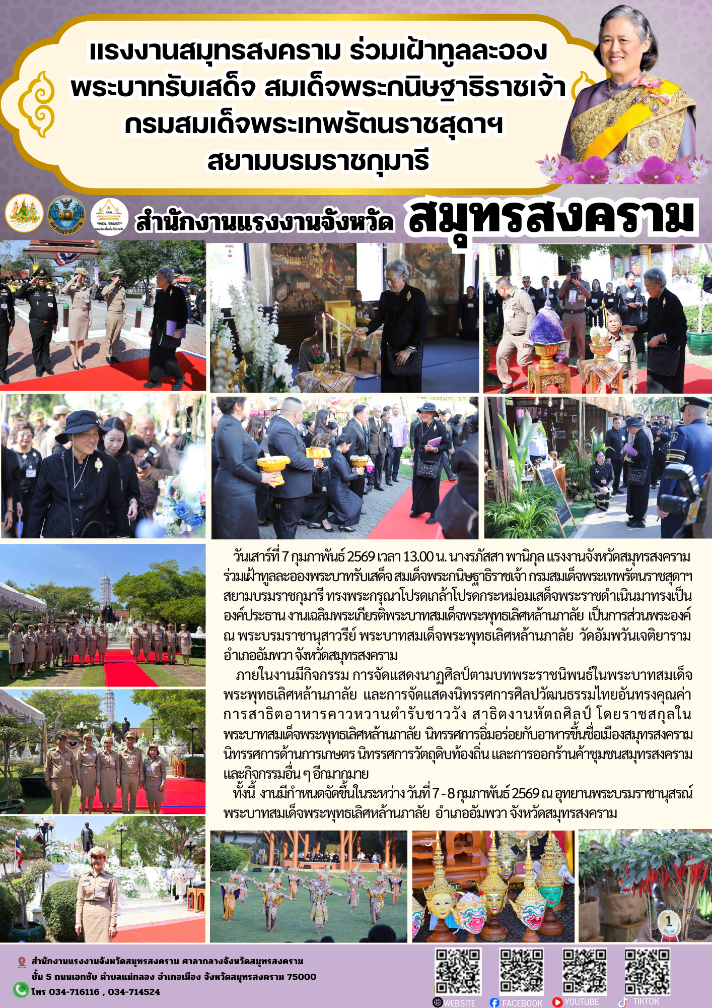 วันเสาร์ที่ 7 กุมภาพันธ์ 2569 เวลา 13.00 น. นางรภัสสา พานิกุล แรงงานจังหวัดสมุทรสงคราม