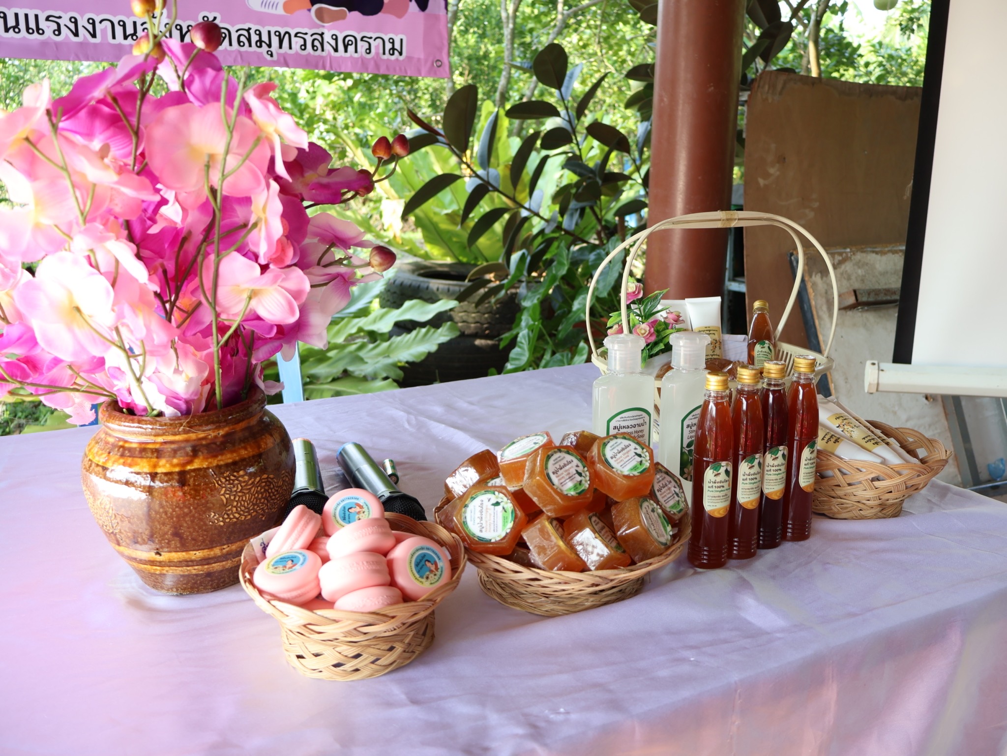 ในการฝึกอบรมดังกล่าว หน่วยงานในสังกัดกระทรวงแรงงานร่วมบูรณาการส่งเสริมกิจกรรมให้ความช่วยเหลือครอบคลุมทุกภารกิจ โดยมี นายไพรัช พรมจีน สวัสดิการและคุ้มครองแรงงานจังหวัดสมุทรสงคราม ร่วมส่งเสริมความรู้ด้านความปลอดภัย อาชีวอนามัย และสภาพแวดล้อมในการทำงานตามหลักการยศาสตร์ นายดรณ์ พลจรัส ผู้อำนวยการสำนักงานพัฒนาฝีมือแรงงานสมุทรสงคราม ให้คำแนะนำด้านการยกระดับทักษะฝีมือเพื่อการพัฒนาผลิตภัณฑ์ และนางสาวเบญจมาศ จูมณี ผู้แทนสำนักงานจัดหางานจังหวัดสมุทรสงคราม ให้คำแนะนำด้านการเปิดตลาดและช่องทางสร้างรายได้ผ่าน Platform e-catalog รวมถึงแพลตฟอร์ม “คนทำงานอิสระ” เพื่อให้แรงงานสามารถพึ่งพาตนเองและมีคุณภาพชีวิตที่มั่นคงอย่างยั่งยืน